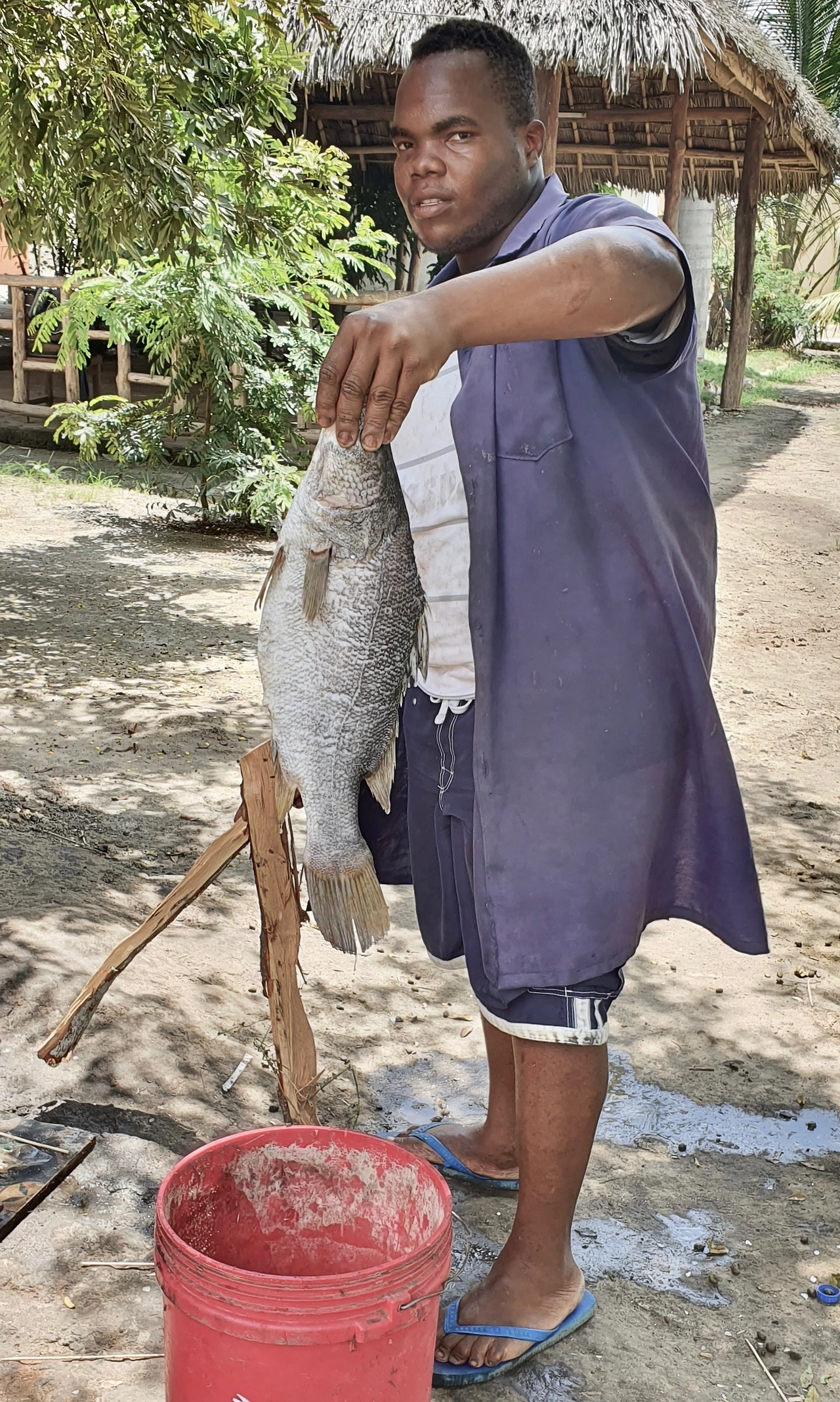 12시 반이 되어 길가 휴게소에서 점심을 먹었다. 차들이 많이 다니는 간선도로가의 휴게소는 규모가 크다. 식당이 두 군데 있고 간이매점이 있다. 이곳 사람들은 손으로 음식을 먹기 때문에 식당에는 한 구석에 손 씻는 곳이 있다. 손 씻는 곳이 없다면 종업원이 세제와 물을 가져와 손을 씻을 수 있도록 해준다. 식사를 마치고도 마찬가지 방법으로 손을 씻는다. 수저를 사용하지 않고 손으로 식사를 하기 때문이다. 수저를 사용하는 것보다 어쩌면 더 위생적일지도 모른다. 우리가 점심을 준비하는 곳 바로 옆 식당은 노천 식당인데 식당 뒤쪽에서 감자와 생선을 음식 준비를 위해 다듬고 있다. 내가 가니까 손질하던 생선을 들어 보여준다. 제법 큰 생선이다.