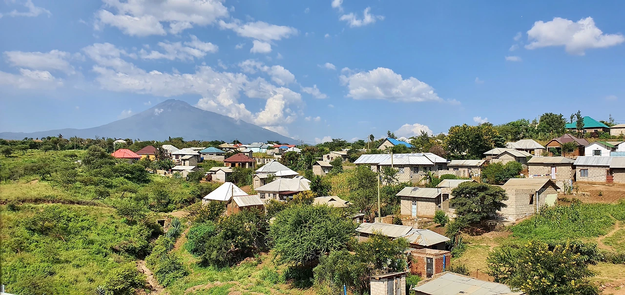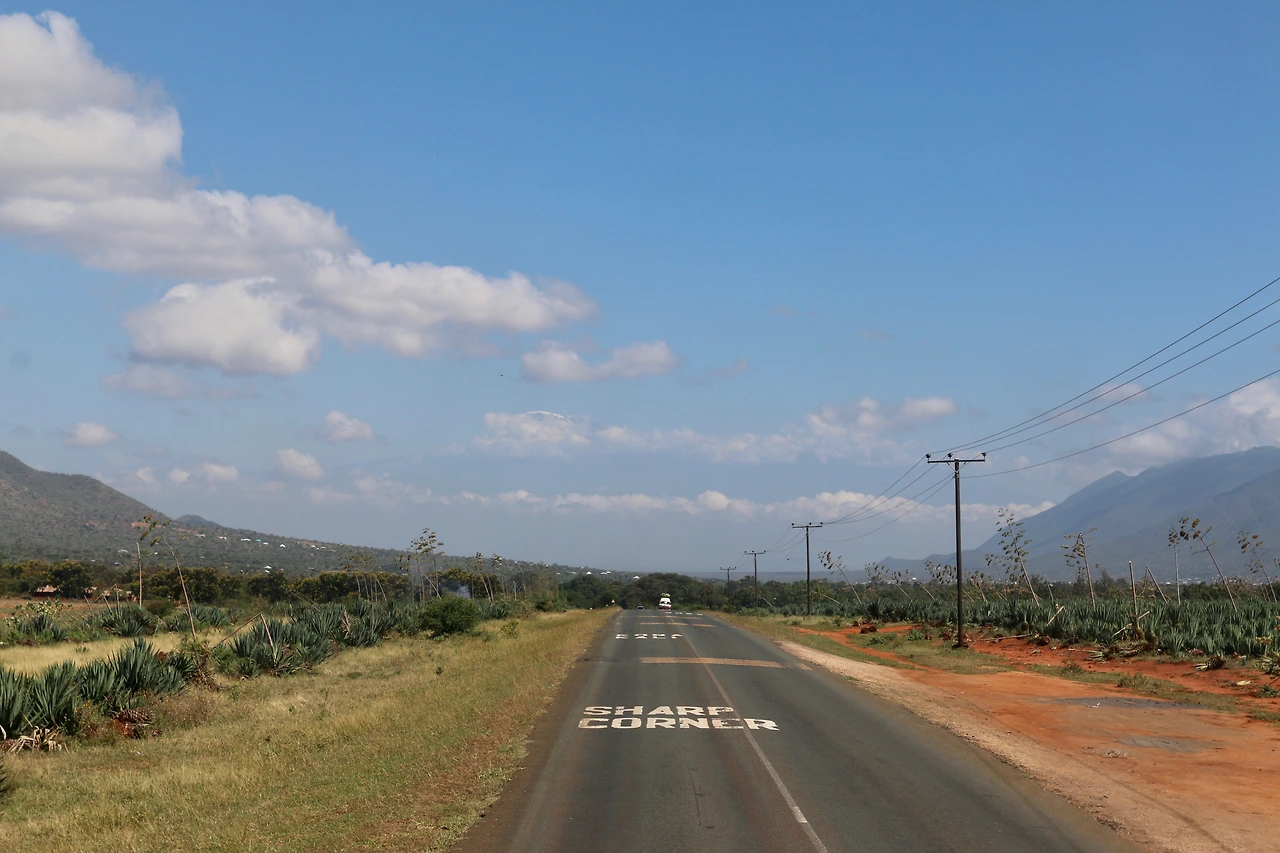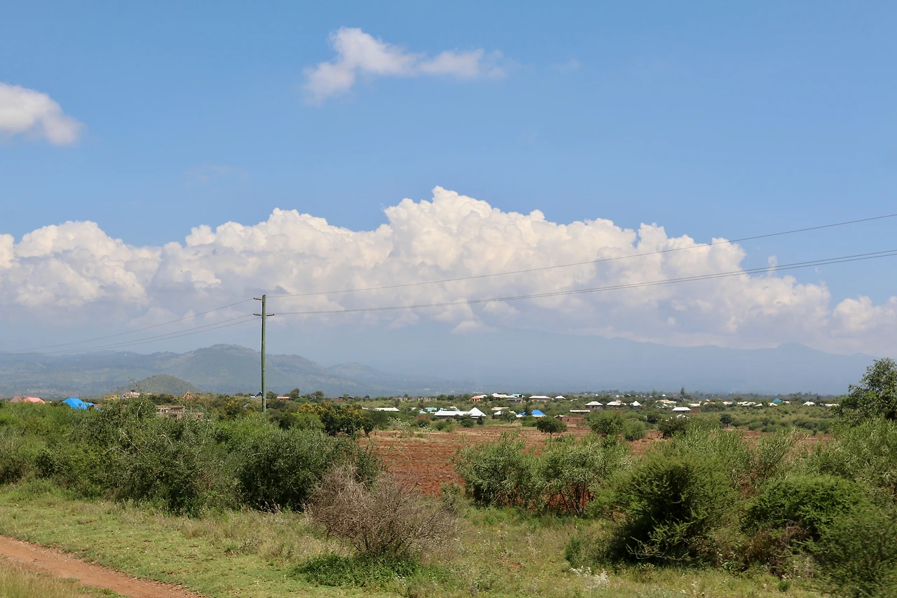 아침 안개가 아직 다 걷히지 않았는데 출발이다. 오늘은 탄자니아의 관광수도라고 하는 아루샤까지 간다. 아루샤는 동물의 왕국에서 자주 보는 세렝게티와 고롱고로의 거점도시이자 킬리만자로 등산의 시작점인 모시에서 가깝다. 동부 아프리카를 오는 관광객들이 대부분 거쳐가는 곳이다. 타타가 구름 낀 산악지방으로 들어섰다. 내륙으로 들어가면 고도가 높아진다. 얼마간 산악지방을 달리다 초원으로 올라서니 좌측은 넓은 초원이고 우측은 험준한 산이 구름을 끼고 있다. 지나온 아프리카 남동부 1000km는 70%가 지평선이 있는 초원이나 사막이고 산이 있는 지방은 30% 정도인데 아주 험준한 산은 없었다. 탄자니아 북부지방으로 들어서자 다소 높은 산이 나타나기 시작했다. 킬리만자로가 가까워져서 그런가 보다. 그러고 보면 탄자니아는 남부와 북부지방이 산악지역인 것 같다. 지도를 보니 우측 험준한 산들이 킬리만자로 산군의 일부분이다. 이곳에서 킬리만자로는 150km 남짓이다. 앞쪽으로 구름에 싸인 높은 산이 다가선다. 킬리만자로 산군의 하나인데 중턱부터 구름으로 싸여 산의 높이를 가늠할 수 없다. 잠시 쉴 겸 타타를 세우고 사진을 찍었다. 산 뒤로 킬리만자로의 눈 덮인 정상이 멀리 보인다.
