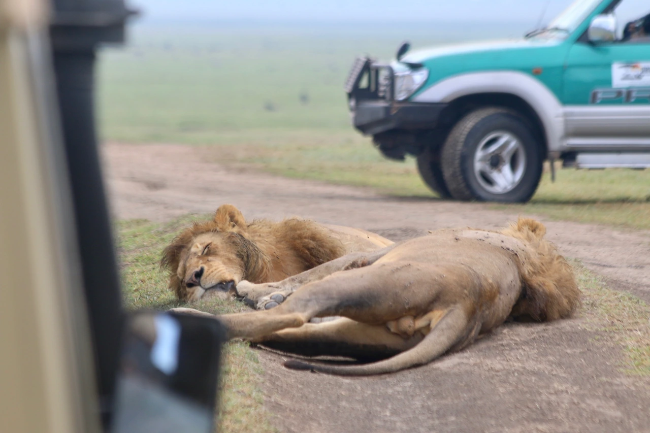 고롱고로는 거대한 화산 분화구다. 공원 입구를 통과해 분화구 주변 높은 곳으로 차가 올라간다. 전망대가 있는 곳에 오르니 해발 2200m다. 분화구 안에는 드넓은 초원이 있고 초원 한가운데 물이 고여있다. 초원과 물이 있으니 동물이 이곳으로 모인다. 전망대에서 분화구 전체를 둘러보고 분화구 안으로 차를 타고 들어가니 동물들이 많이 보인다. 들소, 톰슨가젯, 얼룩말 같은 초식동물들이 가장 많고 버펄로도 가끔 눈에 띈다. 아침시간이라 풀이 젖어 있어서 수사자 3마리가 차가 다니는 길에 누워서 자고 있다. 드라이브 나온 짚들이 다 모여들었다. 근처 작은 연못가 에는 암사자 두 마리가 누워있다. 사자들은 배가 부르면 잠만 자다가 배가 고파야 사냥을 한다. 분화구안 분지에는 마사이 족의 부락이 있다. 분지 안에 살고 있는 마사이족은 소와 염소를 키우며 옛날 방식 그대로 살아간다. 복장도 다른 부족과 달리 옛날 복장을 그대로 입고 있다. 입장권을 발행하는 공원 안이지만 마사이족은 자유롭게 드나든다. 오전 내 분화구 안 이곳저곳을 다니면서 동물들을 보다가 분화구 주변 언덕에 마련된 쉼터로 올라가 준비해 간 도시락으로 점심을 먹었다. 쉼터는 드라이브 나온 팀들이 모여 점심을 먹고 휴식을 취하는 곳이다. 점심 후에는 고롱고로 분화구를 떠나 동물을 관찰하면서 세렝게티로 이동했다. 고롱고로와 세렝게티는 이어져 있는 지역으로 많은 동물들이 보호를 받으며 서식하는 곳이다. 고롱고로에서 세렝게티로 가는 도중에 인류의 조상 유인원이 출현한 지역을 기념하는 기념비가 있다. 근처에 유인원과 관련한 박물관이 있는데 사전 등록이 필요한 곳이라 등록을 못한 우리는 들러 볼 수 없어 아쉬웠다. 고롱고로에서 세렝게티로 이동하는 초원에는 엄청난 수의 물소와 얼룩말이 있다. 나무가 거의 없는 드넓은 초원 대부분을 얼룩말과 들소가 풀을 뜯고 있다. 기린과 표범이나 치타는 고롱고로 지역에는 없다고 한다. 나무가 없어 목이 긴 기린이 먹을 나뭇잎이 없고 치타나 표범은 사냥을 해서 사냥감을 끌고 올라가 먹을 나무가 없어서라고 한다. 표범이나 치타가 사냥을 해도 나무로 올라가지 않으면 하이에나에게 먹이를 다 빼앗기기 때문이다.