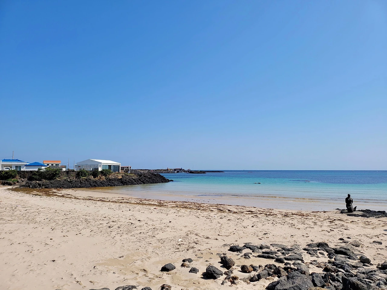 우도에서는 제주 냄새가 더 진하게 난다. 하고수동해수욕장에 들어서니 길가 카페에서 써 놓은 ‘안녕 육지 손님, 우도는 처음이지?’라는 간판이 정감을 자아낸다. 검벌레 해변을 지나 가파른 계단을 따라 우도봉에 올라서니 우도 전경이 한눈에 들어온다. 건너편은 제주도 종달리와 성산읍이다. 우도봉 등대에서 오를 때보다는 덜 가파른 경사로를 따라 내려오면 천진항이다. 시장기가 느껴져 식당을 찾아봤지만 마땅한 곳이 없다.