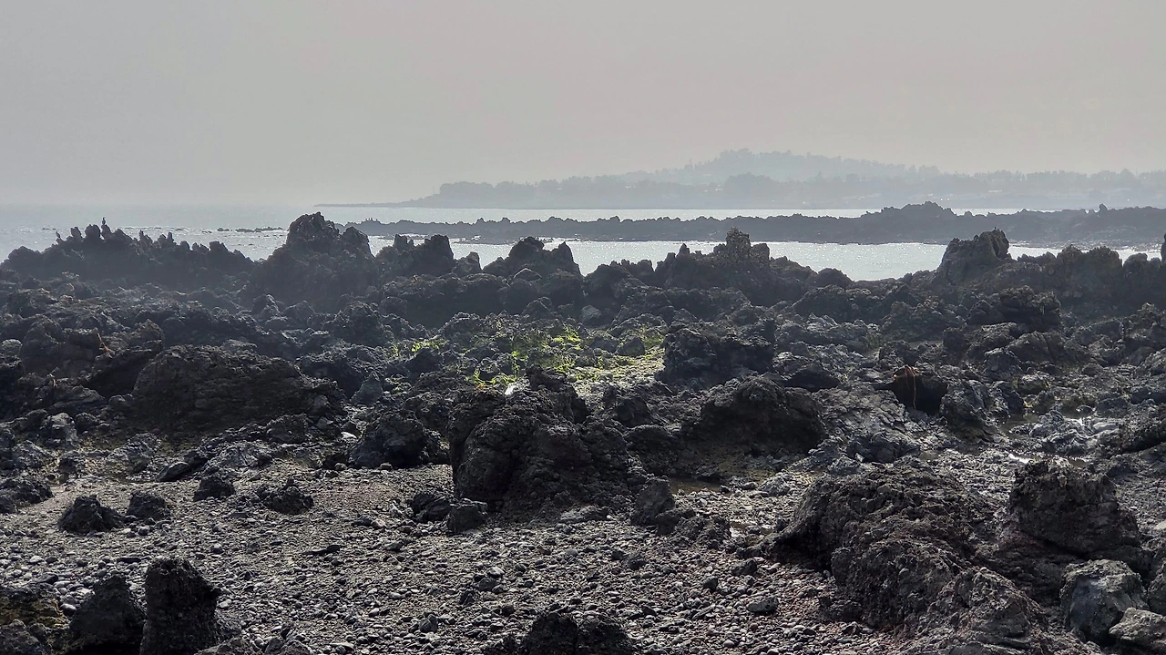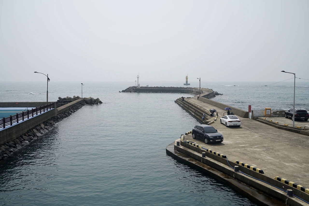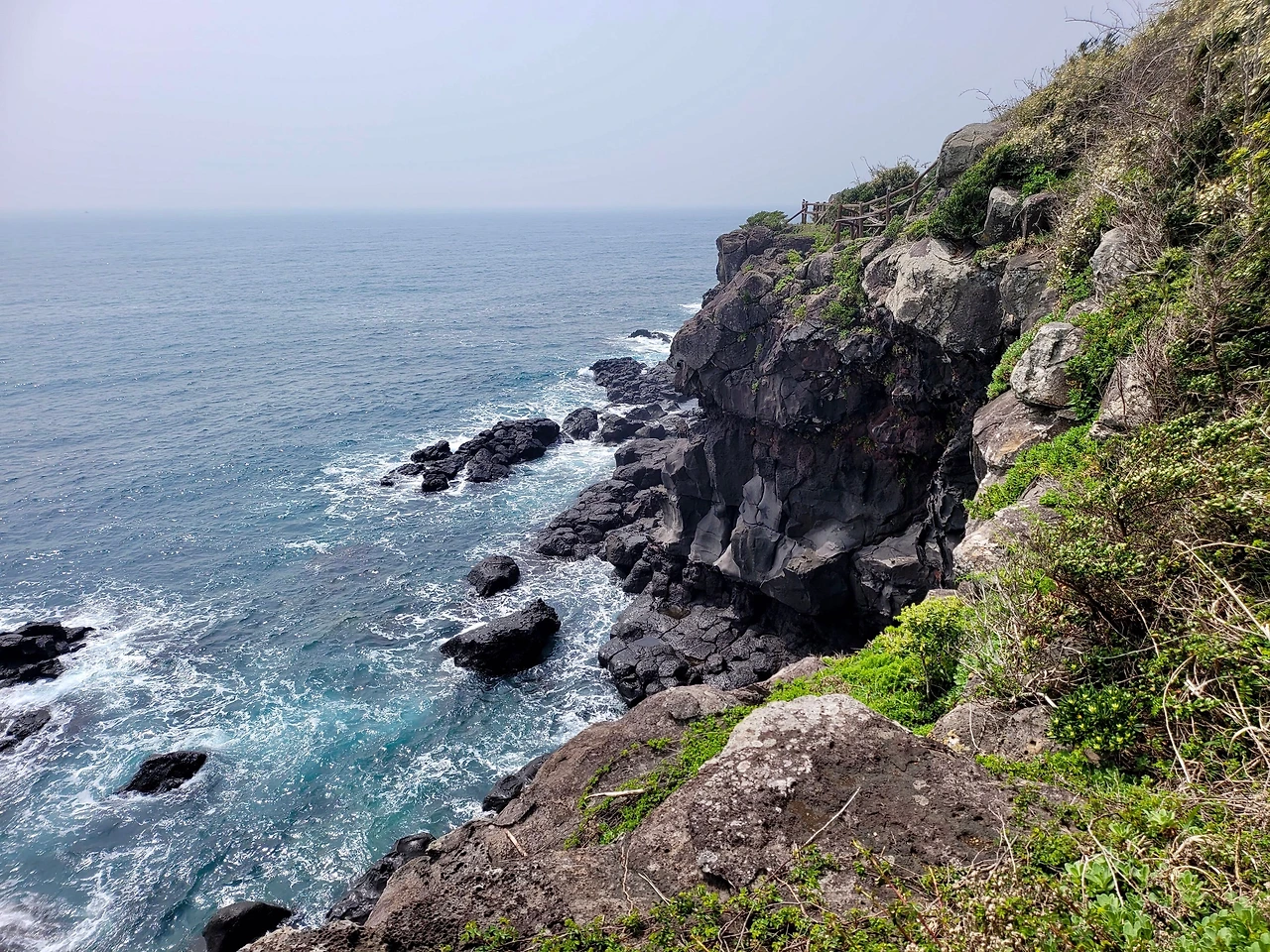 해무가 끼여 수평선이 안 보인다. 남원포구에서 걷기를 시작했다. 해변을 따라 걷는 길이 해안 숲을 드나들며 파도소리가 걸음을 따라온다. 해변 숲 사이로 바다가 드러나면 어김없이 검은 기암괴석이 나타난다. 검은 화산암이 파도가 만든 하얀 포말을 뒤집어쓰고 있다.