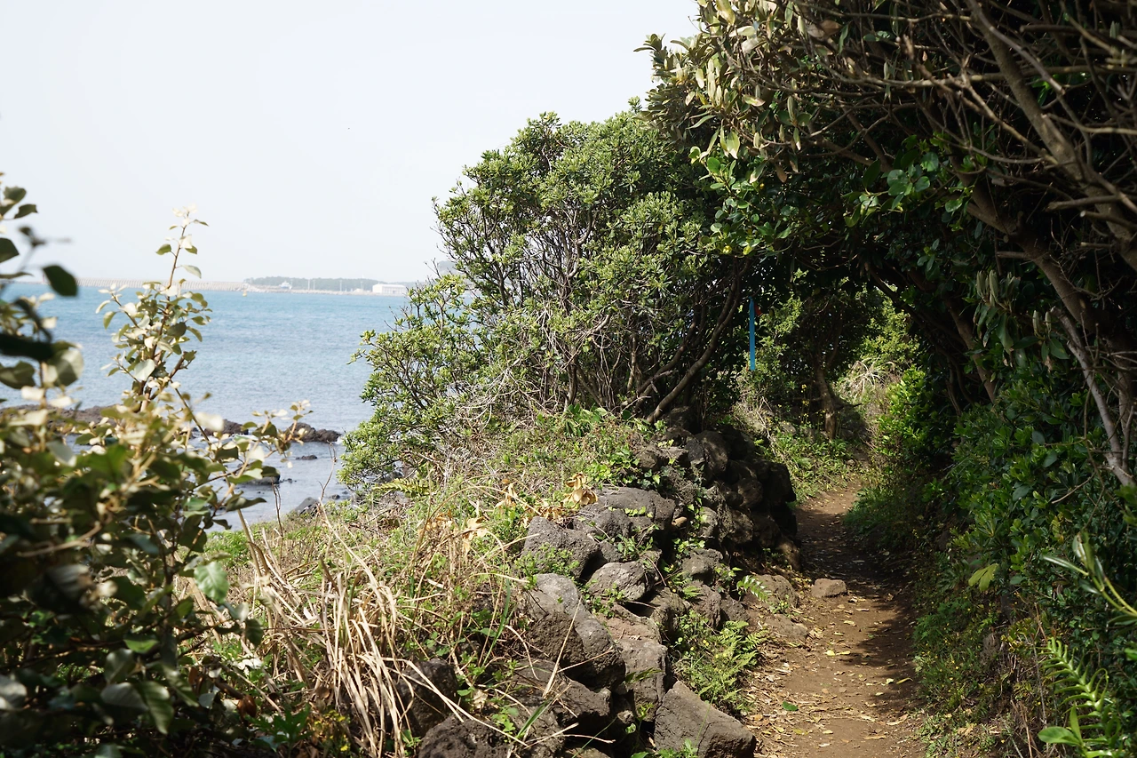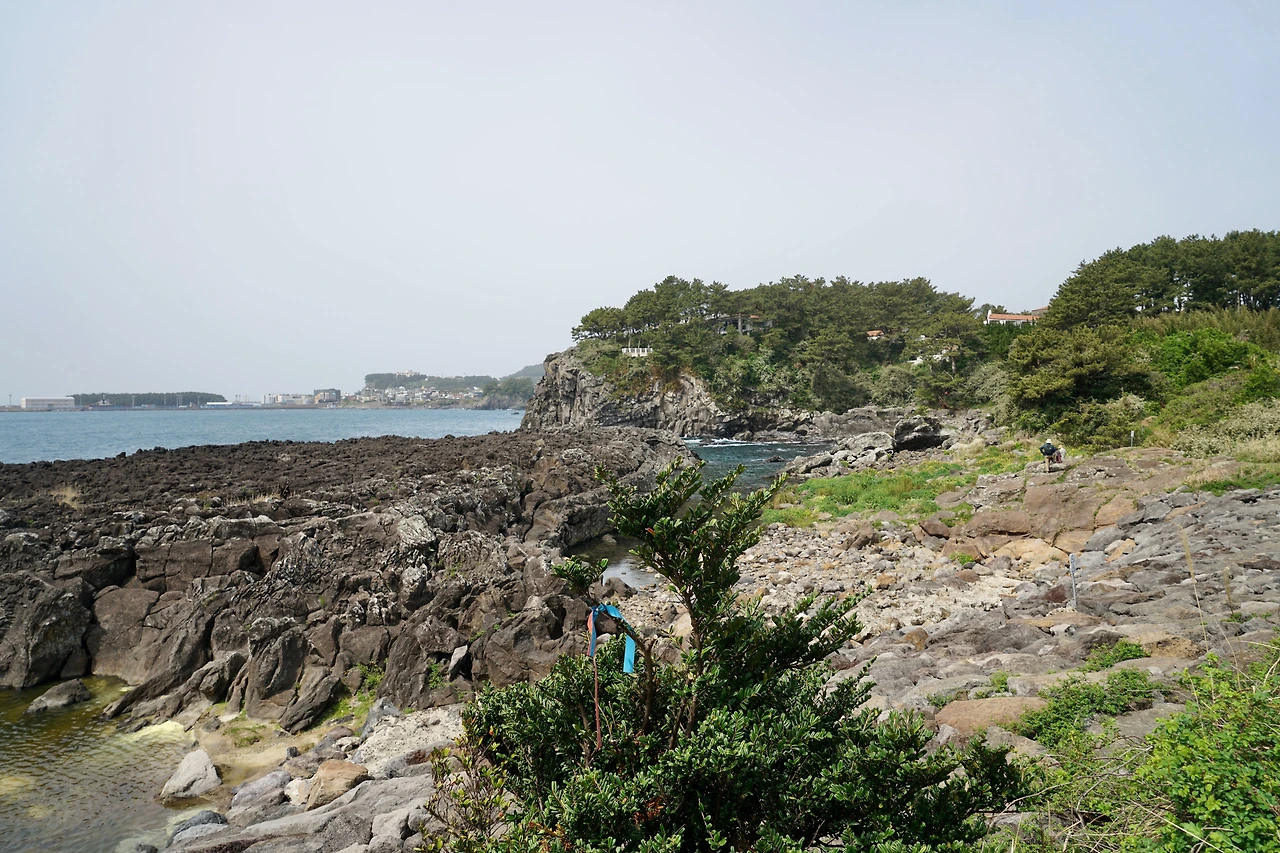 바닷가로 난 길은 보목포구로 이어지고 섶섬이 걷고 있는 나를 따라온다. 보목포구는 볼레낭개라고도 한다. 옛 이름이다. 보목포구는 자리돔으로 유명하다. 보목포구 앞에서 잡히는 자리돔은 부드러워 물회 감으로 애용된다고 한다. 보목포구를 지나니 길은 바닷가 숲으로 이어진다. 길을 걸으며 파도소리를 듣는데 시원한 바람이 숲 사이로 불어온다.