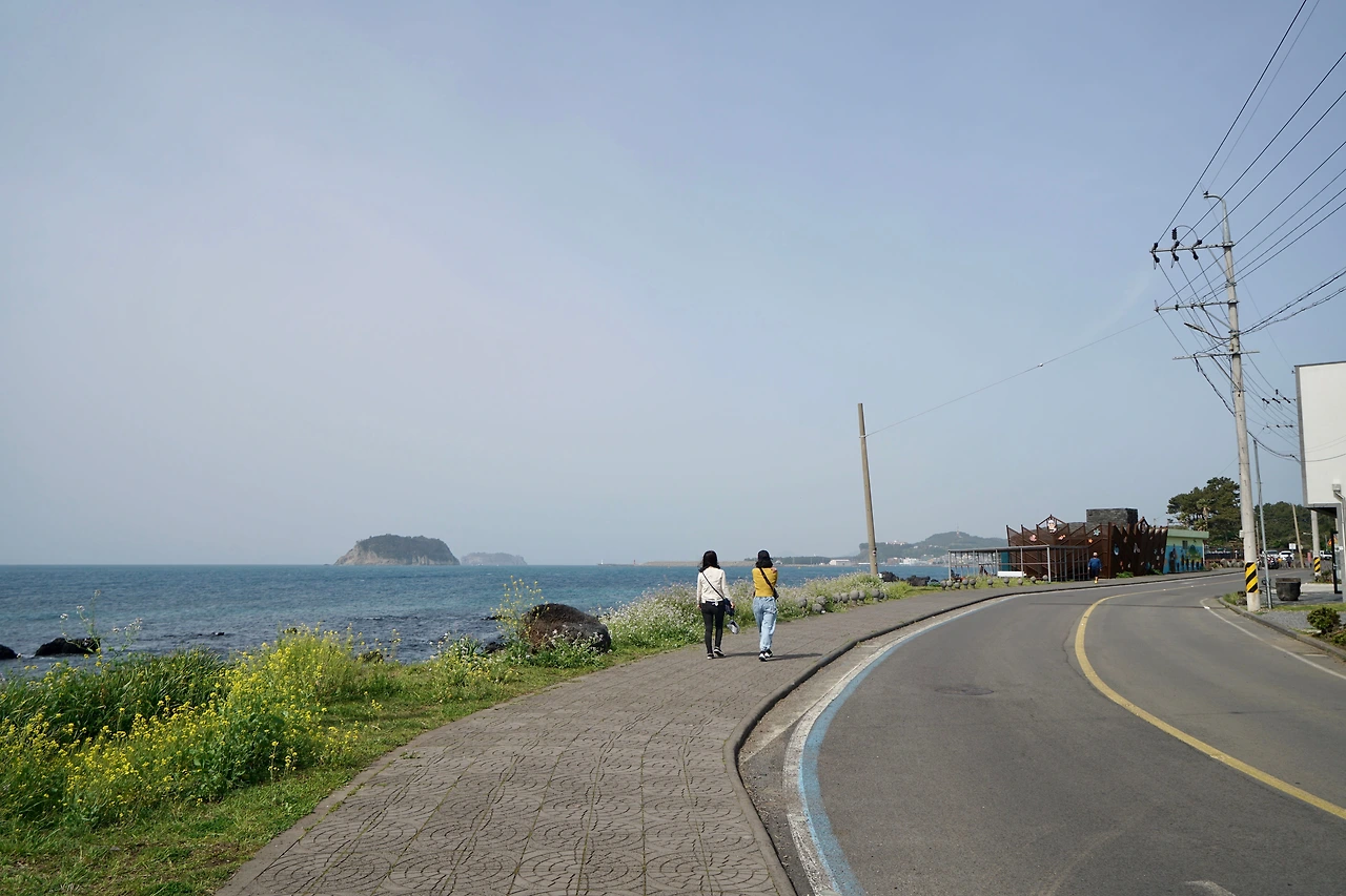 아름다운 바다 경치를 바라보며 걷는 것은 행복이다. 행복한 마음을 접고 허니문하우스를 벗어나면 서귀포 구시가지로 들어선다. 이중섭의 자취가 남아 있는 이중섭로가 있고 드립 커피를 맛볼 수 있는 유동 커피도 있다. 유동 커피집에 들러 에티오피아 원두로 내린 드립 커피를 마셨다. 시간을 두고 커피의 온도에 따라 변하는 맛을 음미해 봤다. 유동 커피집을 나와 이중섭로를 따라 올라가면 이중섭이 살던 집이 있고 그를 테마로 한 기념품점들이 많다. 이중섭로 끝자락에는 서귀포 올레시장이 있다. 전통시장이다. 시장을 지나면 서귀포 올레 여행자 센터에 닿는다. 오늘 걷기를 마무리하는 지점이다.