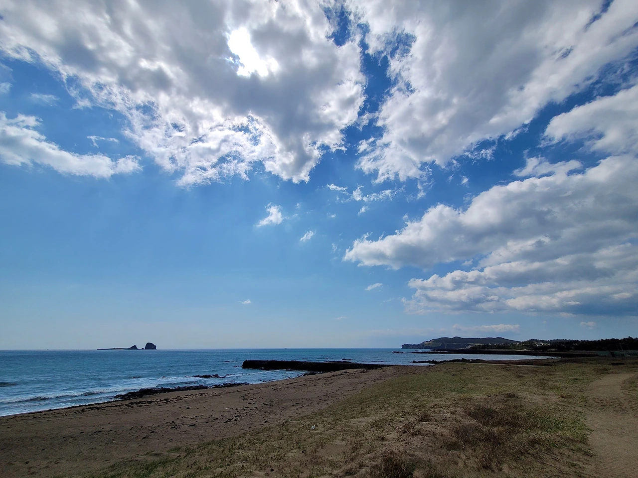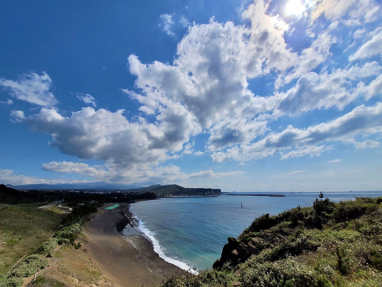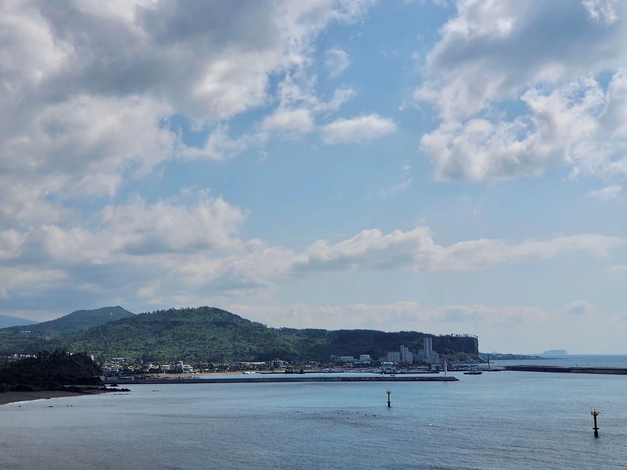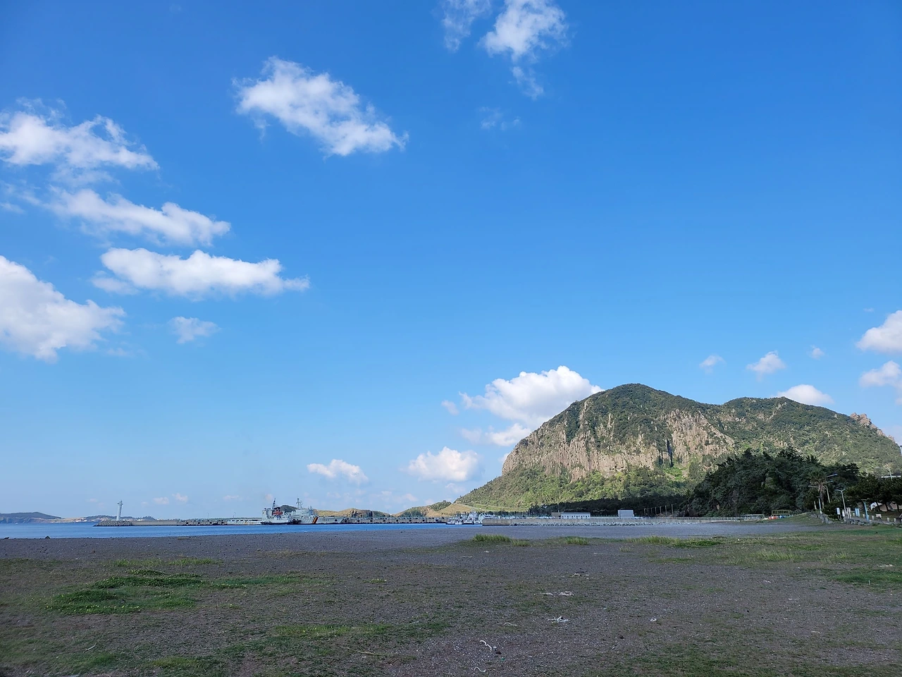 며칠 만에 날씨가 좋아졌다. 오늘은 화순항에서 걷기 시작하였다. 화순항은 월라봉과 산방산 사이에 있는 아름다운 포구다. 금모래 해변이 있어서 더 아름다운 항구였지만 화력발전소와 기형적으로 큰 방파제가 생겨 지금은 아름다움이 사라져 안타깝다.