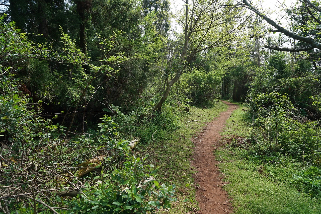 많은 곳을 여행하기에는 자전거가 걷기보다는 낫지 않을까. 두 가지 모두 외부 에너지의 도움 없이 인간의 심장과 근육만을 이용한다는 공통점이 있는데 단순히 이동의 효율면에서 보면 자전거가 낫다. 그러나 내 눈높이에서 주변을 찬찬히 보고 느끼며 감성을 일깨우는 데는 걷기가 더 낫다고 생각하며 숲길로 들어섰다. 오늘 길은 대부분 숲으로 이어진다. 호젓한 길이다.