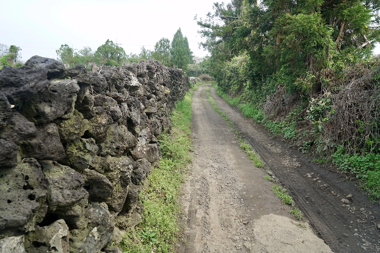 마을을 벗어나는데 ‘혼자 걸으세요?’ 하는 소리에 깜짝 놀라 돌아보니 중년 남자가 자전거를 끌면서 따라온다. 제주도를 자전거로 여행 중이라고 한다. 도로에서는 자전거를 타고 지름길로 가기 위해 오솔길에서는 끌고 간다고 한다. 한동안 이어지는 오솔길을 걸으며 이야기를 나누었다. 전주에서 살면서 작년에 자전거로 3000km를 여행했다고 한다. 함께 걷다가 아스팔트 도로가 나오니 즐거운 여행하라는 인사를 남기며 자전거를 타고 달려 나간다.