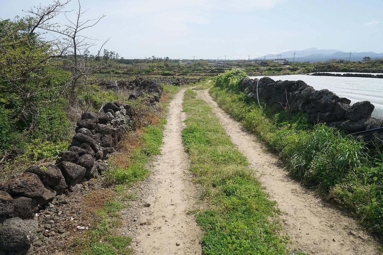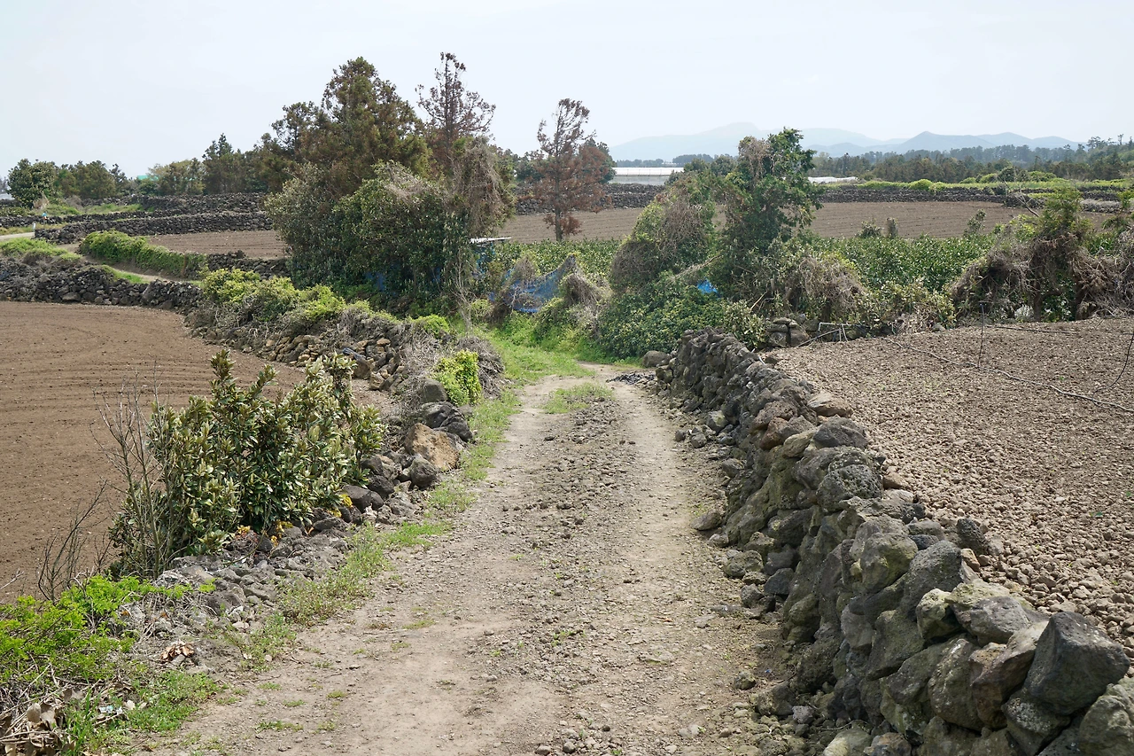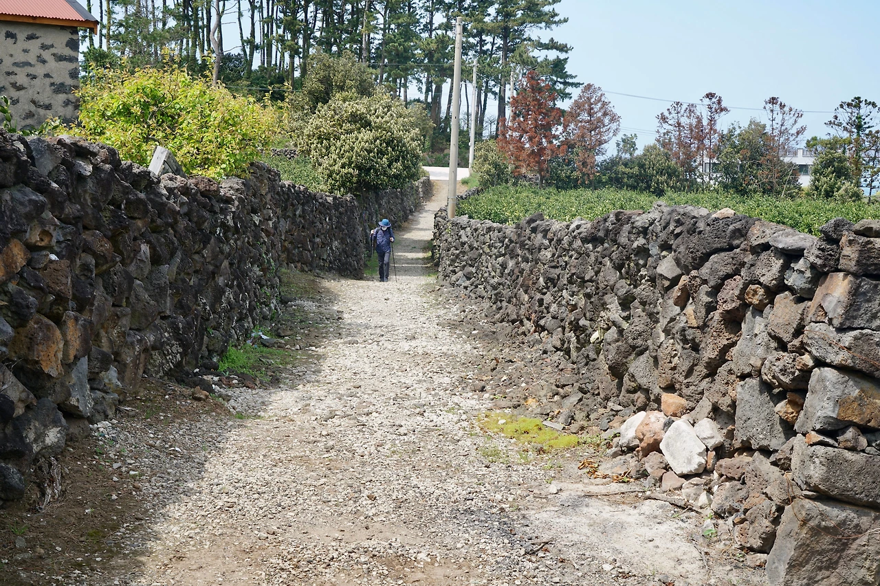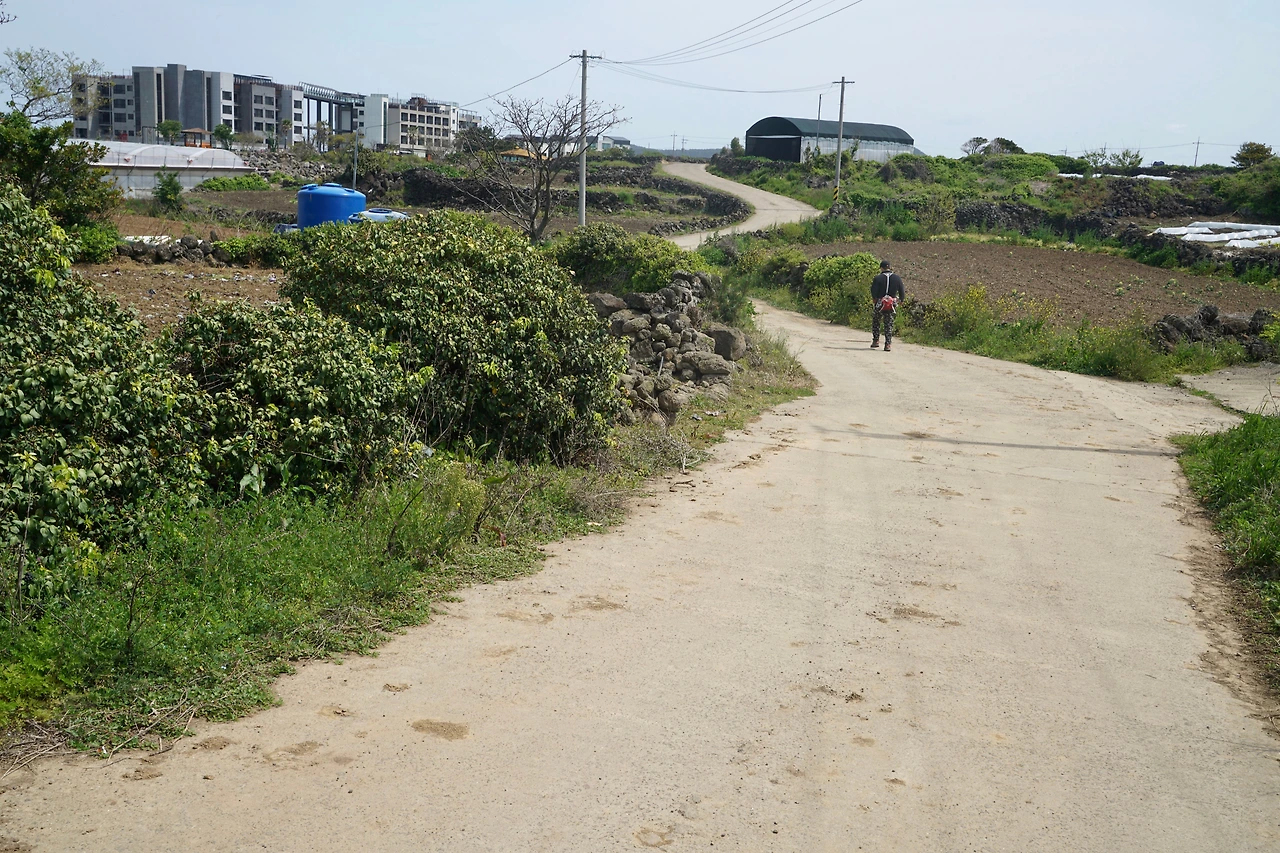 한림항에서 시작된 길은 해안을 따라가다가 수원리에서 A, B 구간으로 갈라진다. A구간은 중산간을 지나는 길이고 B구간은 해안을 따라가는 길이다. B길은 한담 해변의 카페거리를 지나기 때문에 관광객들이 많은 곳을 지나게 된다. 오늘은 바람이 많이 분다. 해변길보다는 중산간 길이 걷기에 더 적합할 것 같아 중산간 길로 접어들었다.