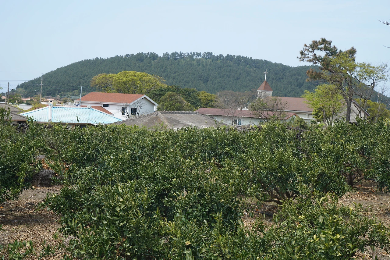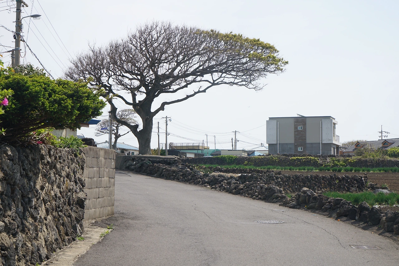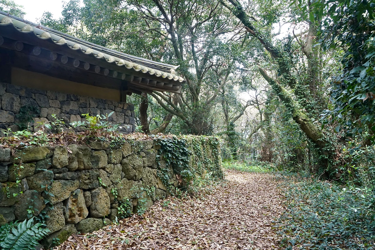 편안함도 잠시 숲길을 지나니 다시 시멘트 포장길이 나오고 납읍초등학교가 닿는다. 난대림이 자라는 금산공원은 초등학교 맞은편에 자리하고 있다. 금산공원은 자연 그대로의 난대림으로 숲이 울창하여 마치 정글에 들어온 듯하다. 숲의 느낌을 제대로 느끼기 위해 심호흡을 하며 잠시 공원을 둘러보고 납읍 마을을 벗어나니 과오름으로 길이 이어진다. 길은 정상으로 오르지 않고 둘레길로 빠져나간다. 이어 도새기 숲길을 지나고 도로를 건너면 고내 오름이다. 높지는 않지만 고내포구를 감싸고 있는 나지막한 오름이다. 이번에도 정상으로는 오르지 않아 좋다.