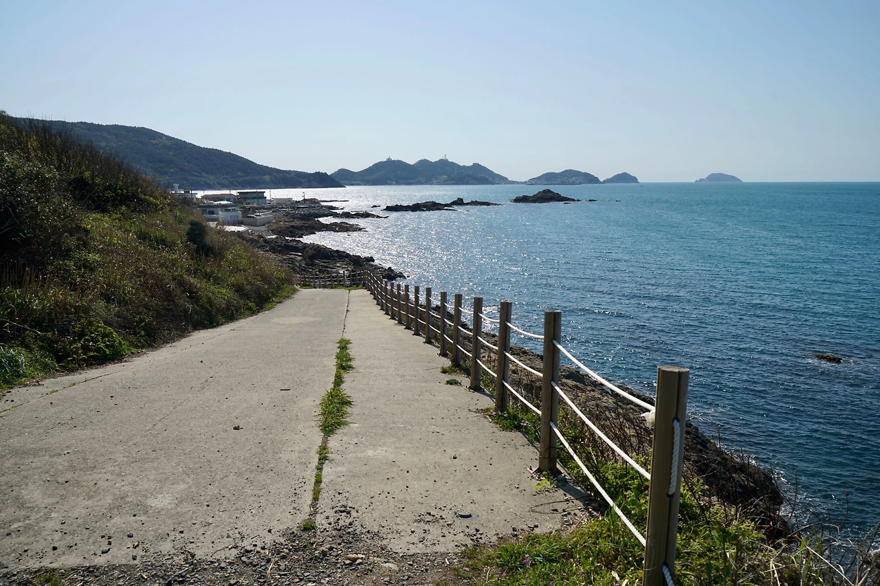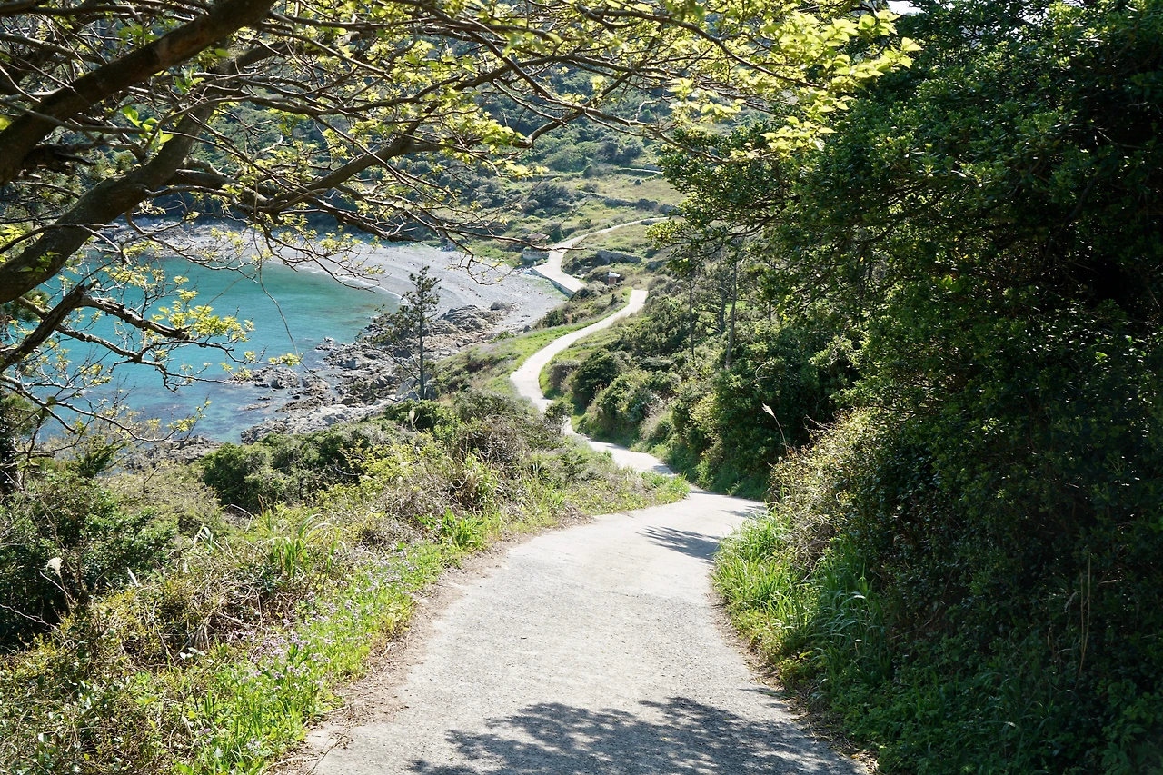 내려오는 길에는 저수지를 만난다. 마을 사람들의 상수원인 정수장도 있다. 도로를 따라 난 오솔길을 따라 추자교에 닿는다. 이곳부터는 섬 일주 포장도로를 따라 상추자항 까지 간다. 오전에 배에서 내려 걷기를 시작해 상추자도와 하추자도를 다 돌았다. 추자섬의 봉우리들을 오르내리는 이번 길은 다른 곳보다는 힘든 구간이지만 빼어난 추자도의 경치로 인해 지루함을 느낄 수 없는 아름다운 길이다.