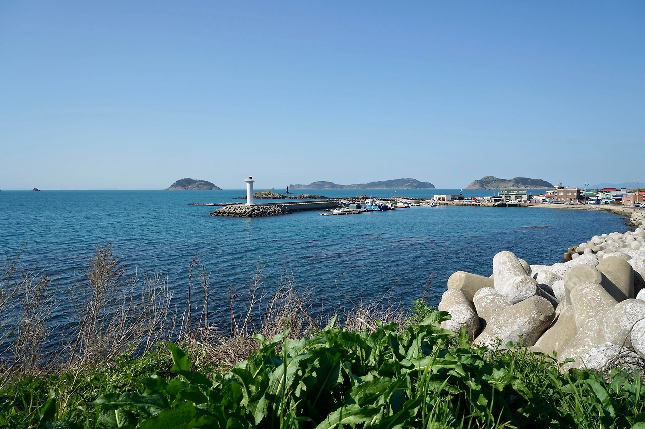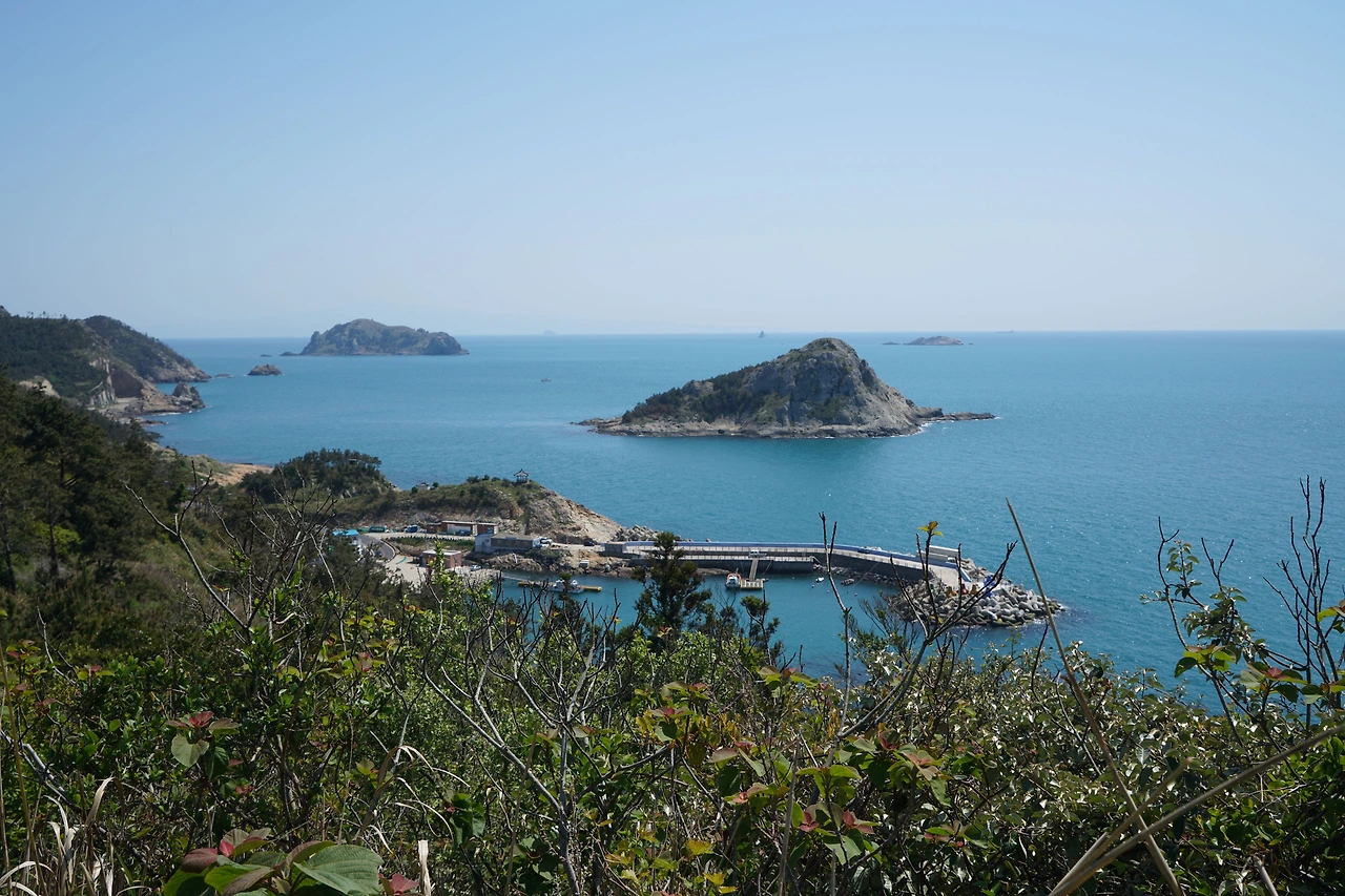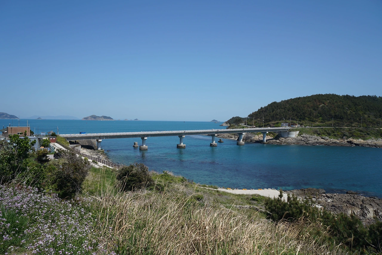 묵리 슈퍼에서 아이스크림 하나 사서 베어 물며 해안도로를 따라가니 산으로 오르는 방향 표식이 나온다. 산길을 따라 하추자도와 남단의 섬들을 바라보며 산길을 걷다 보면 신양항에 내려서게 된다. 하추자도의 항구인 신양항에서도 하루에 한 번씩 제주도를 오가는 배가 다닌다. 신양항을 지나 버스가 다니는 일주도로를 따라가다가 산길로 들어서면 무우꽃이 만발한 고갯길을 오른다.