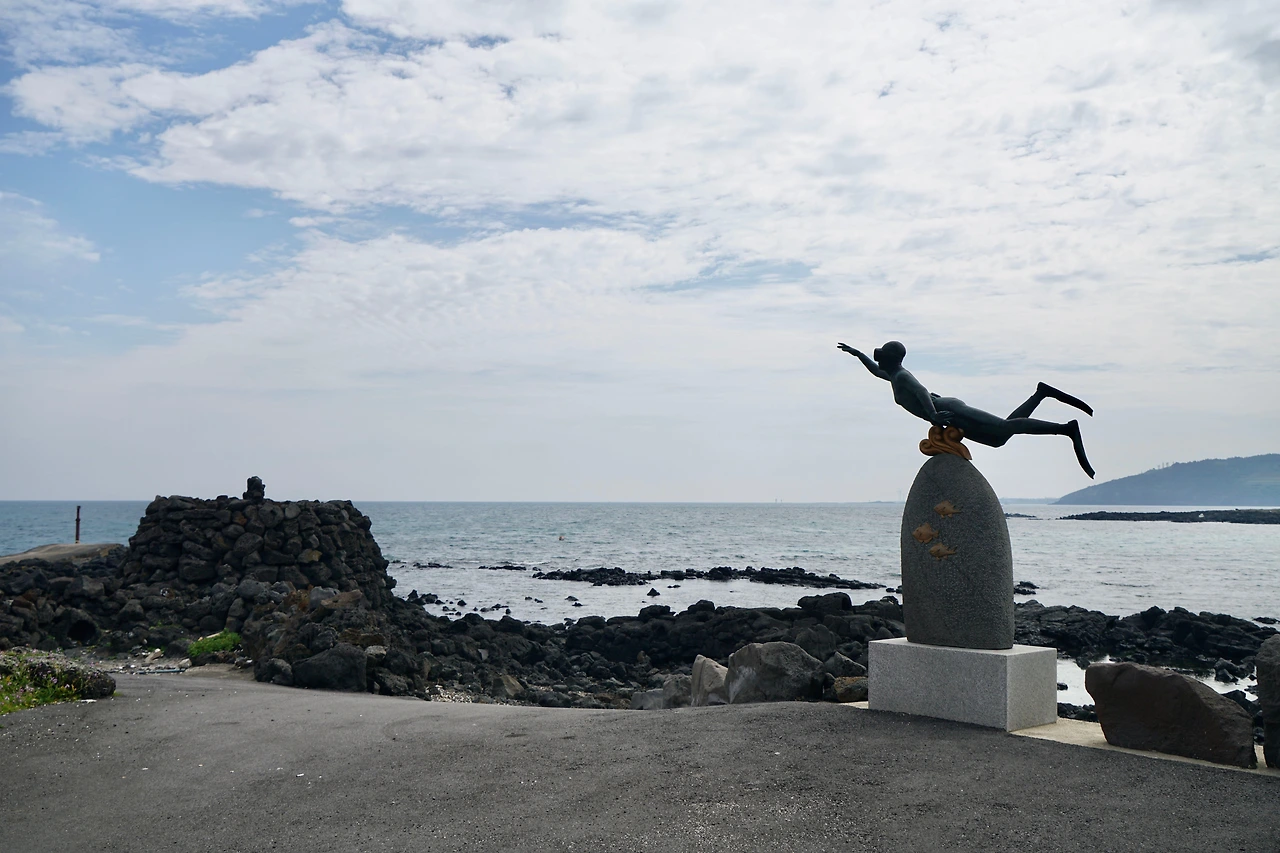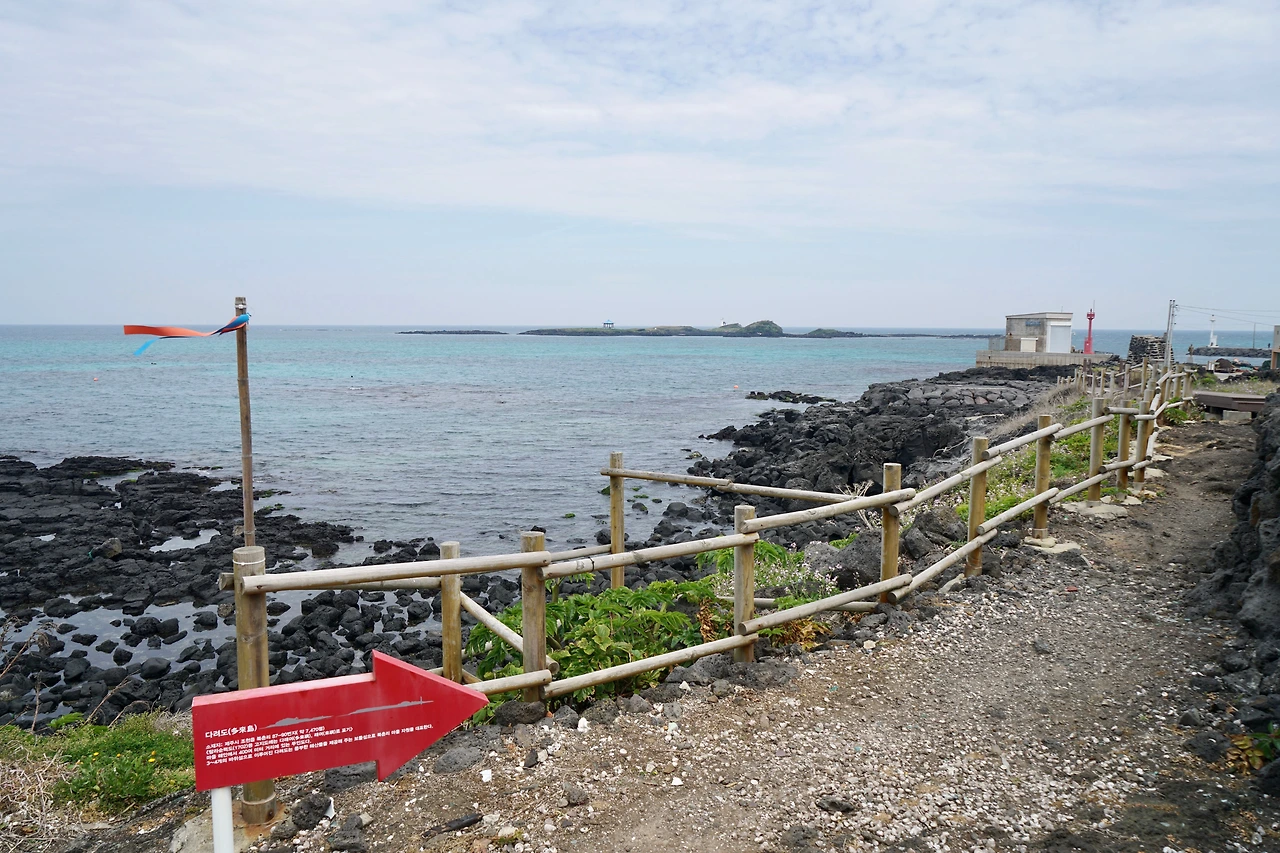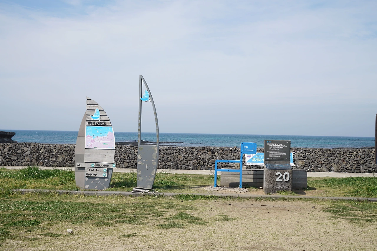 오늘은 조천 만세동산에서 출발하였다. 거대한 만세 기념탑에 주눅이 들 정도다. 만세동산을 빠져나가면 해안도로다. 날씨가 흐려 걷기에는 좋지만 바다 색깔은 맑은 날에 비해 푸르름이 덜하다. 해안도로는 관곶을 지나 신흥해수욕장으로 이어진다. 관곶은 해남 땅끝마을과 가장 거리가 가까운 곳으로 날씨가 좋은 날에는 추자도가 보인다고 한다.