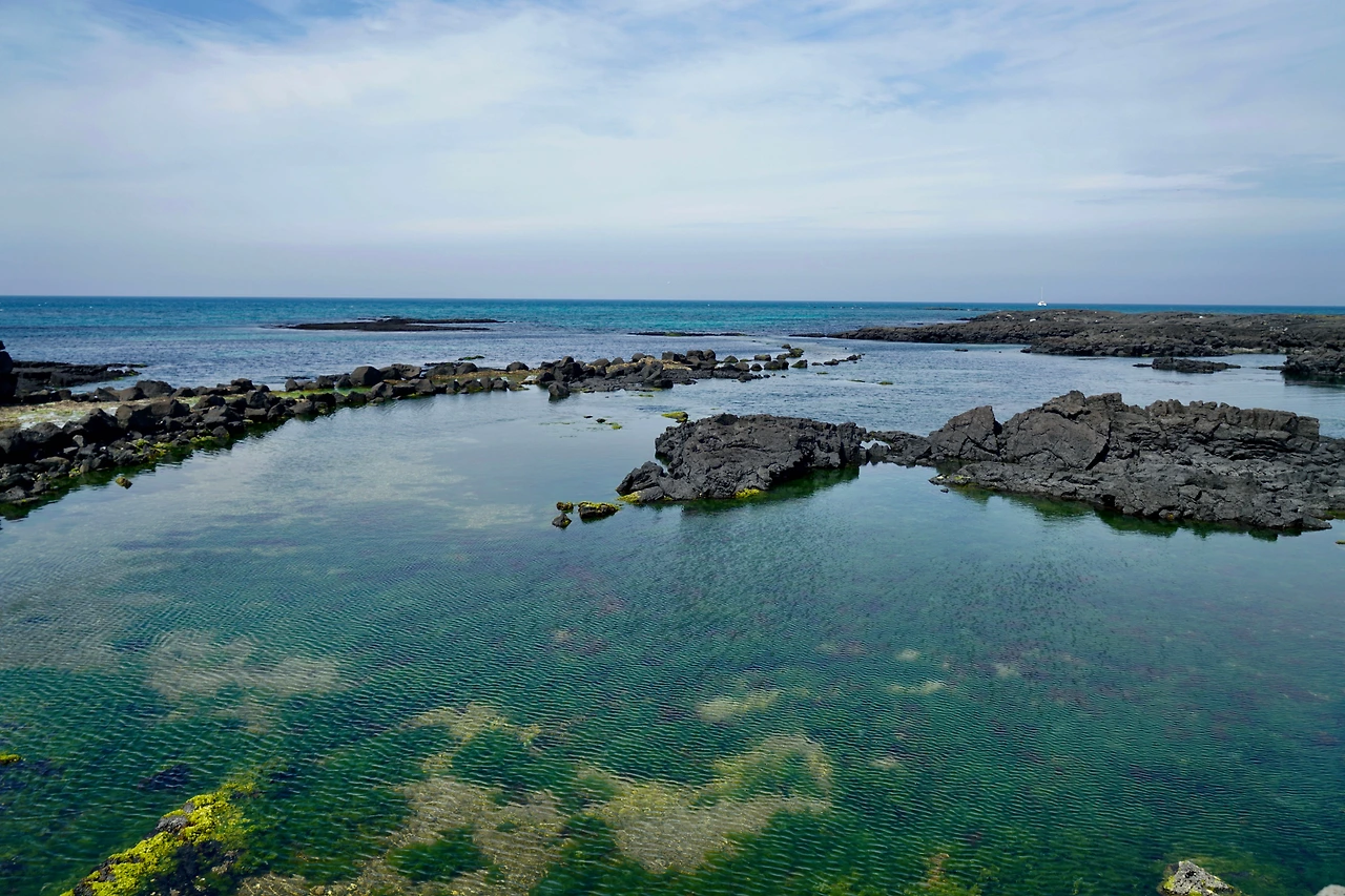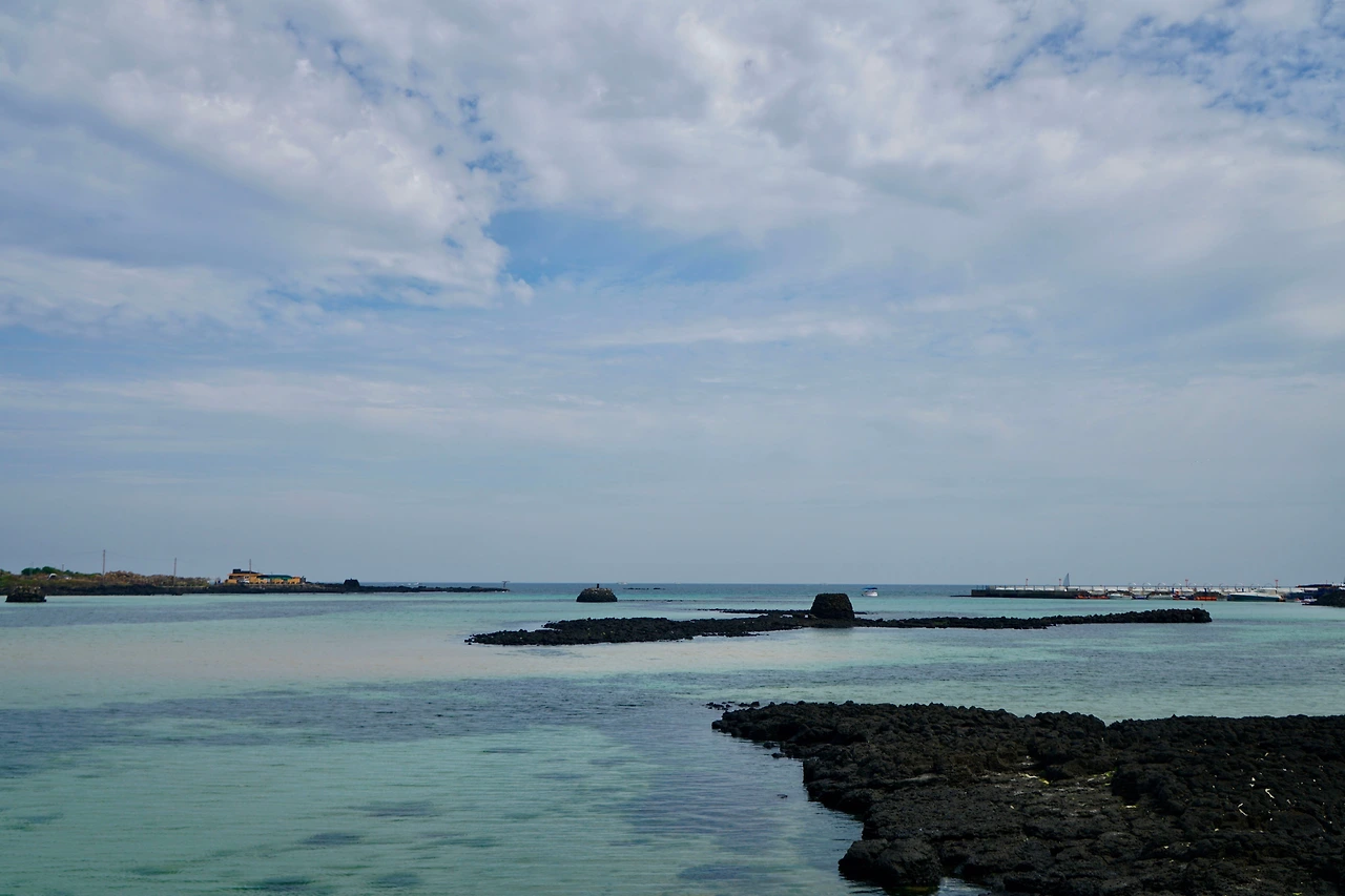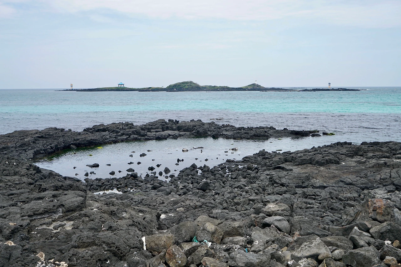 오늘은 조천 만세동산에서 출발하였다. 거대한 만세 기념탑에 주눅이 들 정도다. 만세동산을 빠져나가면 해안도로다. 날씨가 흐려 걷기에는 좋지만 바다 색깔은 맑은 날에 비해 푸르름이 덜하다. 해안도로는 관곶을 지나 신흥해수욕장으로 이어진다. 관곶은 해남 땅끝마을과 가장 거리가 가까운 곳으로 날씨가 좋은 날에는 추자도가 보인다고 한다.