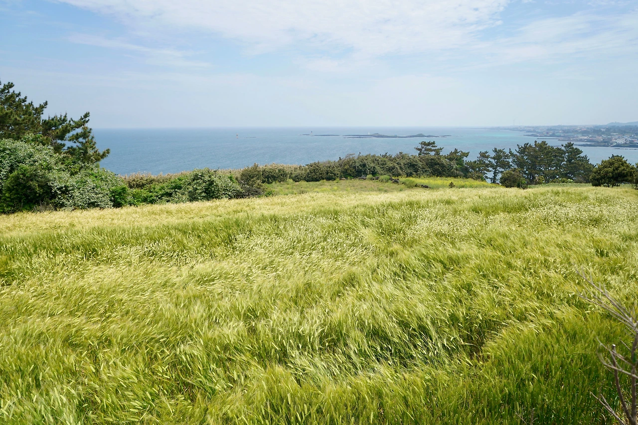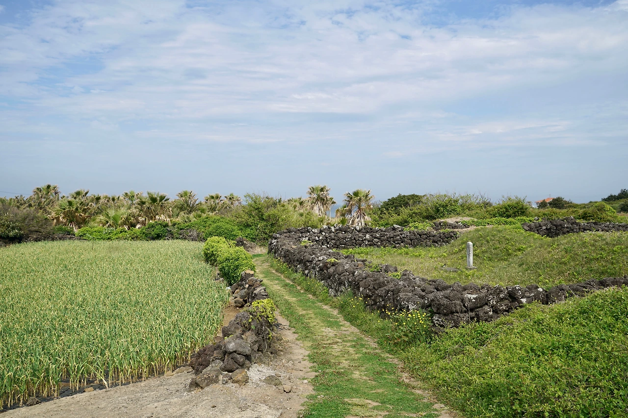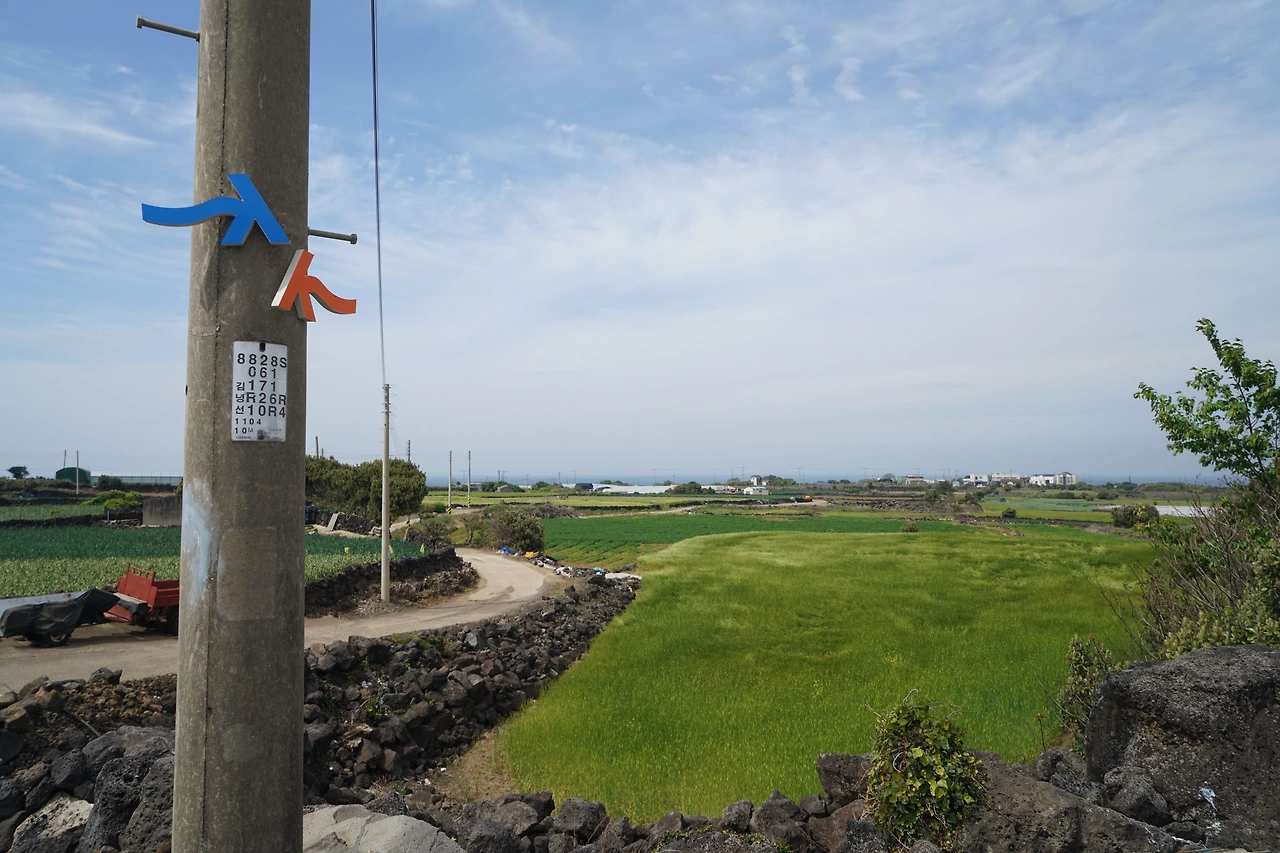 곶자왈 숲길과 시멘트 포장길이 번갈아 이어진다. 곶자왈을 벗어나니 보리밭과 마늘밭이 사이로 멀리 수평선이 보인다. 마주치는 해안일주도로를 따라 걷다가 해안으로 나서면 오늘의 마지막 지점인 김녕 서포구다. 마침 구름 사이로 해가 나와 바다는 파랗게 빛을 발하며 수평선을 뚜렷이 드러내고 있다. 올레길 마지막 구간으로 갈수록 발이 가벼워지고 마음이 가라앉아 점점 아쉬움이 커진다. 오늘 길은 전반부는 바다, 후반부는 숲이 잘 조화된 길이다.