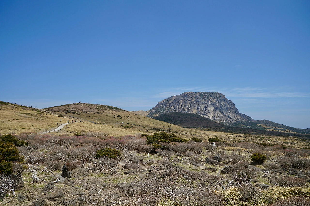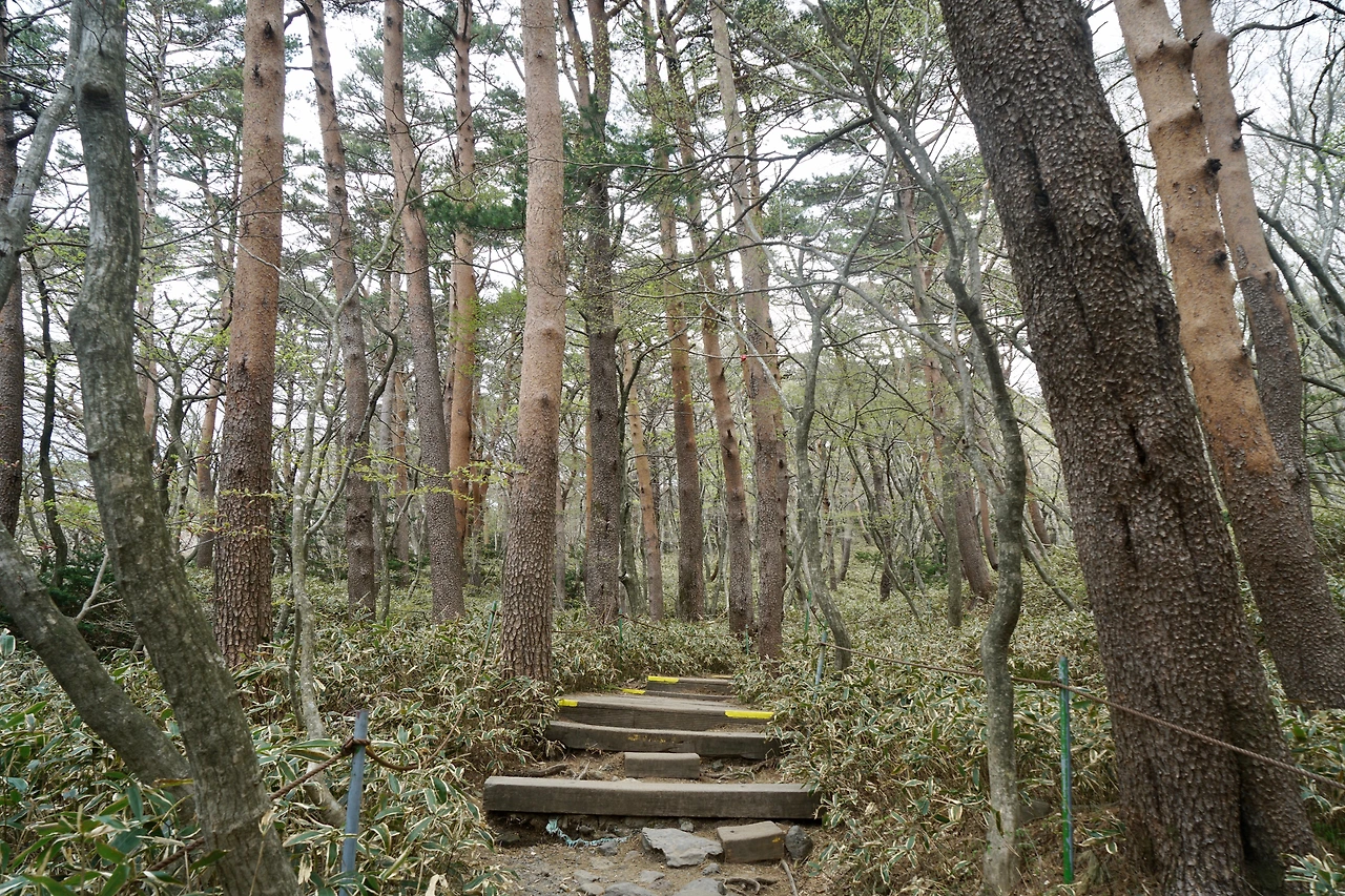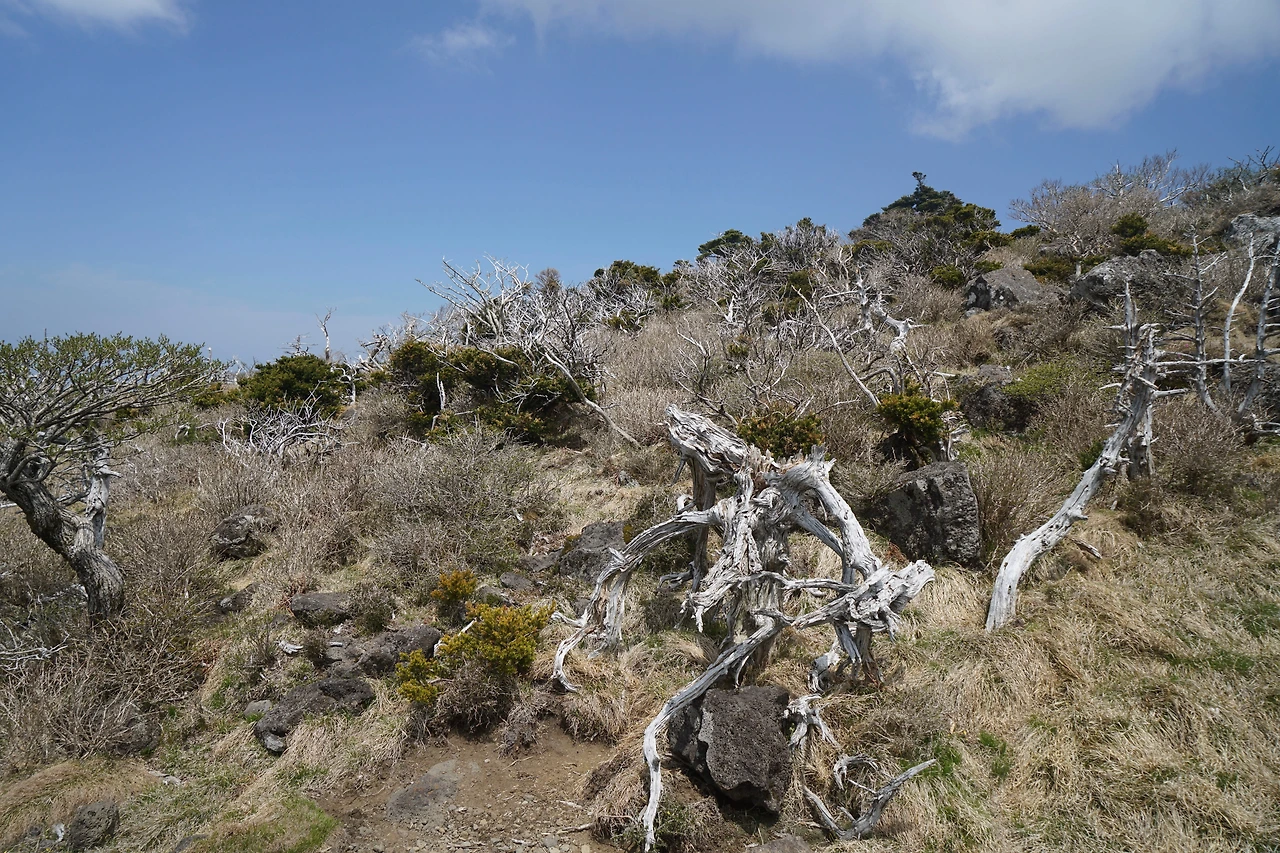 한 시간 정도 기다리다가 차례가 돌아왔다. 등산길 입구까지 걸어가기에는 좀 먼 거리다. 입구 매점에서 점심 요깃거리를 사서 배낭에 넣고 산을 오르기 시작했다. 성판악 코스는 여름과 겨울에 올라봤는데 영실 코스는 이번이 처음이다. 영실 코스로는 백록담까지 오를 수 없다. 윗세오름에서 2km 더 올라가면 백록담으로 오르는 길을 폐쇄해 놓았다. 그런데 윗세오름에서 바라보는 한라산이 아름다워 이 코스를 찾는 사람들이 많다.