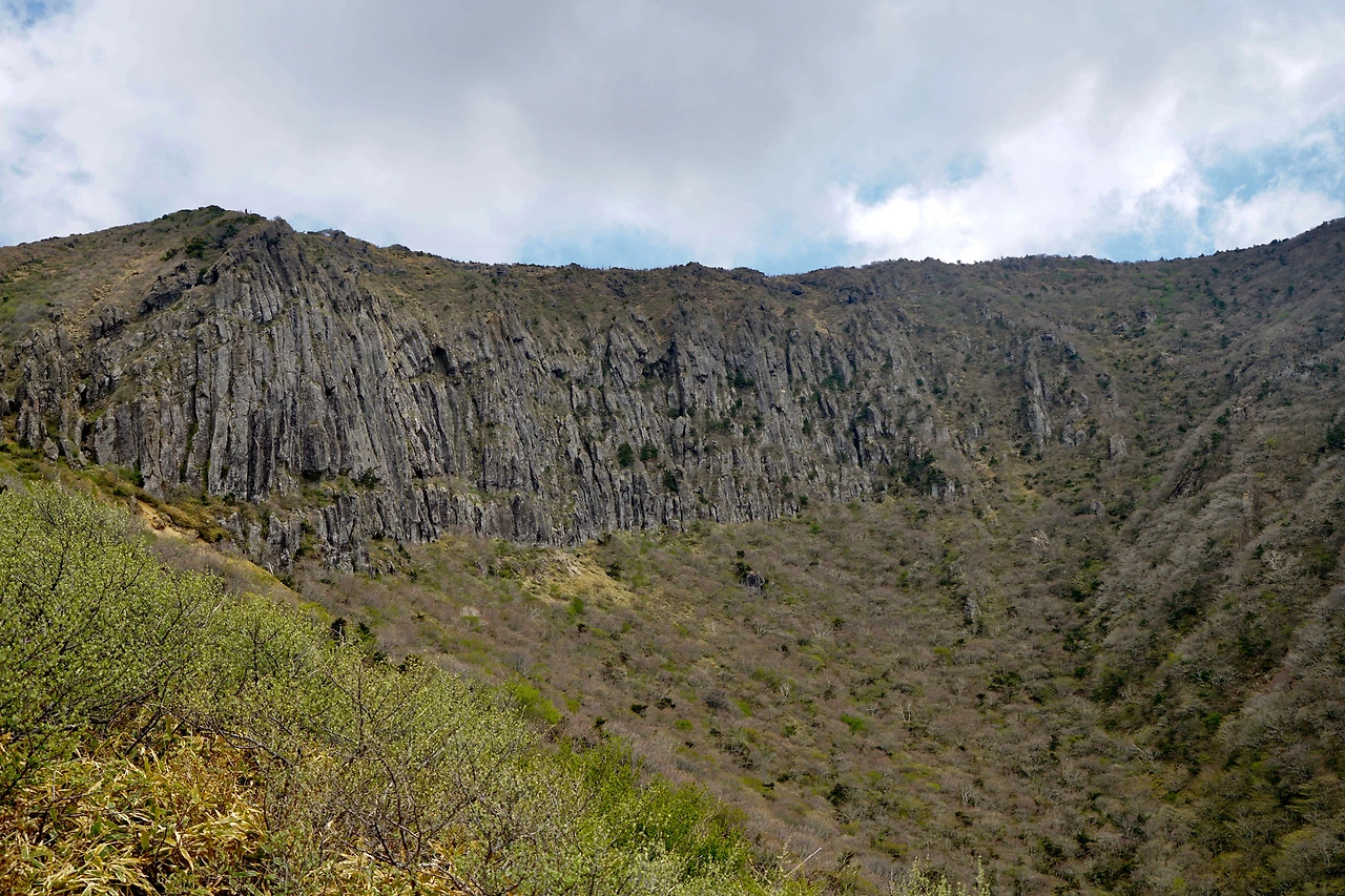 경사길을 힘들게 오르면 넓은 평원이 나타나고 한라산 정상부가 눈에 들어온다. 산아래에서 볼 때 백록담이 있는 정상부의 돌출부로 아름답고 잘생긴 거대한 바위 덩어리이다. 영실코스 아니면 볼 수 없는 장관이다. 이 모습을 보는 것으로 백록담에 못 오르는 아쉬움을 뒤로하고 하산하였다.