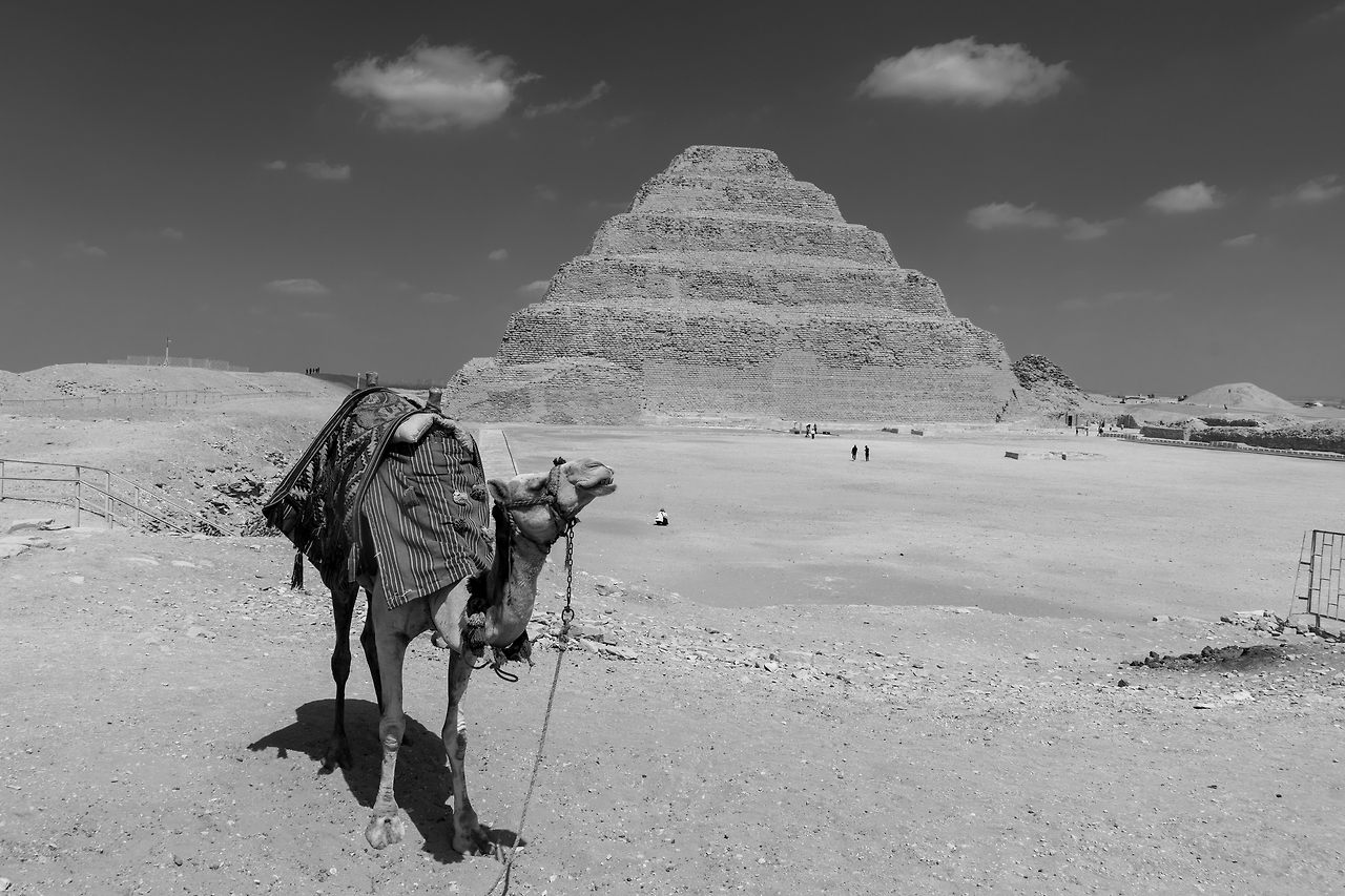 기자의 피라미드를 보기 전에 이집트 최초의 피라미드인 사카라의 조세르왕 피라미드를 먼저 찾았다. 최초의 피라미드이다 보니 기술이 부족하여 계단식으로 건설되었다. 사카라는 기자에서 자동차로 40여분 거리에 있다. 근처에는 고왕국의 수도였던 멤피스가 있어 당시 유물을 전시한 야외 박물관을 둘러볼 수도 있다.