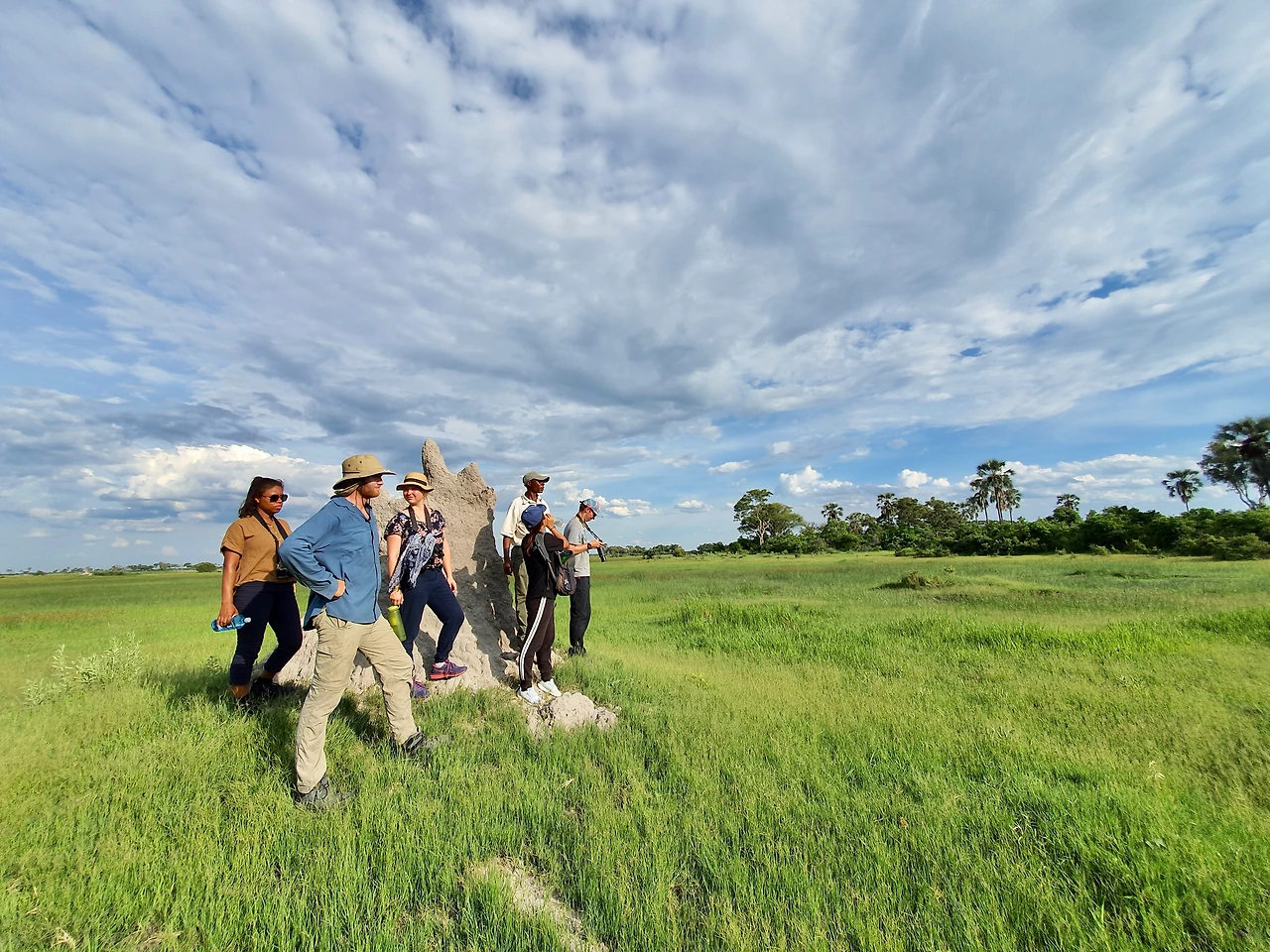 걸어서 다니는 초원은 생각보다 위험하지 않았다. 맹수는 쉽게 만날 수 없고 뱀이라도 발밑에 있을까 봐 조심해서 다녔지만 뱀도 보이지 않는다. 초식 동물들은 우리가 접근하면 달아난다. 우리도 너무 가까이 접근하지 않도록 조심하면서 구경하는데 동물원이 아닌 곳에서 기린을 이렇게 가까이서 보기는 처음이다. 임팔라, 스프링복, 얼룩말, 누우가 떼를 이루어 초원에서 풀을 뜯고 있다가 인기척이 느껴지면 경계태세를 취하기도 하고 몰려서 달아나기도 한다. 버펄로도 보이지만 위험하니 가까이 접근하지 말라고 한다. 초원에는 타마이즈가 만든 탑들도 눈에 띈다. 타마이즈 타워는 이곳뿐 아니라 초원 어디에서나 흔히 볼 수 있다. 개미의 일종인 타마이즈가 만든 거대 건축물이다. 3시간 초원을 걸어 다녔지만 코끼리 같은 대형동물은 볼 수 없었다. 동물들과 산책하는 기분으로 걸어야 지루하지 않은 사파리 투어다. 임팔라를 쫒는 사자를 기대했는데 역시 기대로 끝났다. 3시간 동안 초원을 걸었더니 피곤하고 허기가 진다. 잘 먹는데도 불구하고 때가 되면 배가 고픈 건 여행 다니기 전과 다른 점이다. 마틴이 밥과 닭고기 찜을 저녁으로 준비했다. 밤에는 위험하다고 하니 저녁을 먹자마자 텐트로 들어가 누웠다가 잠이 들었다. 텐트에 비가 떨어지는 소리를 잠결에 들었다.
