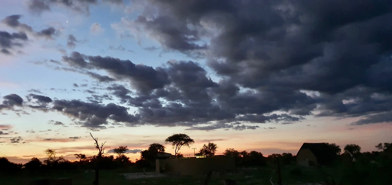 저녁 메뉴는 밥에 닭고기 찜이다. 감자와 고추장만 더 넣으면 닭볶음탕이다. 고추장은 아니더라고 신라면 스프 하나만 있어도 얼큰한 닭볶음탕 맛이 날 텐데. 저녁을 먹고 텐트에 들어와 짐 정리를 하는데 코끼리가 바 앞 워터홀에 왔다고 한다. 얼른 나가보니 커다란 코끼리가 워터홀에서 물을 마시고 터덜터덜 건너편으로 사라진다. 어두워지는 하늘에 검은 뭉게구름이 뭉칫뭉칫 몰려오는데 유럽 기상예보관인 피터는 오늘 밤 비 걱정은 안 해도 좋겠다고 한다. 초원의 밤은 석양과 함께 온다. 구름이 없다면 별은 보기에 좋은 그믐 하늘이다. 아프카에서 맞은 2020년 벌써 21일이 지나갔다.