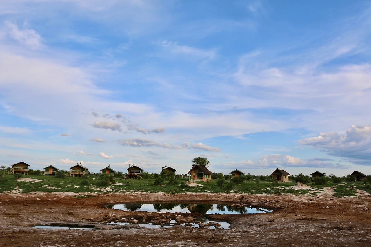 12시 40분 나타에 도착했다. 캠프까지는 아직 60km를 더 가야 한다. 근처 나무 그늘에서 튜나 샌드위치로 점심을 먹고 나니 오후 1시 50분이다. 오늘 밤을 지낼 엘리펀트 샌드라는 캠프까지는 40분이 더 걸린다. 부지런히 달려 엘리펀드 샌드에 도착하니 넓은 초원 곳곳에 숙박 용 캐빈이 있고 캠핑을 할 수 있는 장소도 있다. 리셉션과 바가 있는 건물 앞에 워터홀이 있는데 이곳은 코끼리가 수시로 물을 마시러 오는 곳이다. 주변 곳곳에 코끼리의 배설물이 보인다. 캠핑용 취사장과 샤워장 주위로는 코끼리가 접근할 수 없게 바닥에 뾰족한 장애물을 설치하고 담장에는 전기선을 둘러놓았다. 건기에는 코끼리가 수시로 오는데 지금은 우기라서 자주 안 온다. 오후 시간을 바 옆에 있는 수영장 선탠용 침대에서 시원한 맥주 한 병 옆에 두고 책을 읽으며 시간을 보냈다.