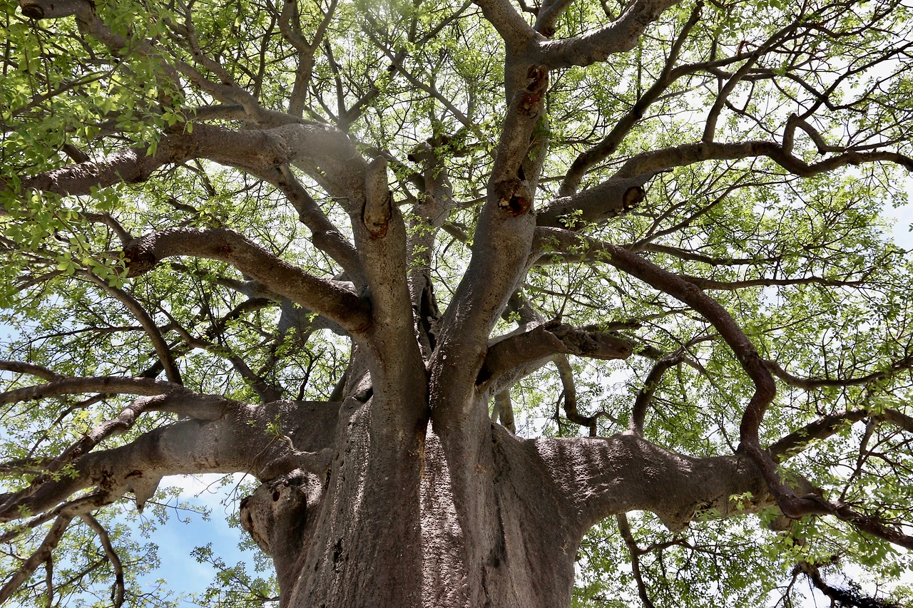 도로 옆에 코끼리가 나타났다. 에토샤나 오카방코에서 볼 수 없었는데 나타로 가는 길목에서 만났다. 육중한 체구의 수놈으로 유유히 코로 풀을 뜯어 입으로 가져간다. 지금 시즌에는 초베국립공원에 코끼리가 많다고 한다. 에토샤와 오카방코 지역의 코끼리가 좋은 풀을 찾아 초베지역으로 옮아 갔다. 코끼리는 하루에 40km씩 이동할 수 있다. 다들 보고 싶어 하던 코끼리가 길가에 있으니 창가에 붙어 사진 찍기에 바쁘다. 코끼리는 도로 위에 차가 다녀도 아랑곳하지 않고 풀을 먹기에 바쁘다. 혼자 있는 것으로 보아 근처에 코끼리 몇 마리가 있을 것 같다. 코끼리 사진을 찍으며 풀을 뜯어먹는 모습을 구경하고 다시 가던 길을 재촉한다. 얼마를 더 가니 길가에 거대한 바오바브 나무 한그루가 있다. 엄청나게 큰 바오밥 나무다. 무파로를 세우고 부시부시 토일렛을 갈 겸 나무를 구경하려고 차에서 내렸다. 수령을 알 수 없으나 밑둥의 둘레가 12m 정도고 높이는 20m 정도 되는 것 같다. 바오밥 나무 밑 둥에 사람들이 나무껍질을 파내거나 페인트로 낙서를 해놨다. 어디서나 흔적을 남기고 싶어 하는 것이 사람들의 마음이다. 인터넷이 발달한 이후로 특별한 곳에 있는 자신의 사진을 SNS에 올려 ‘좋아요’를 받고 싶어 하는 마음과 같다. 바오밥 나무는 생땍쥐베리의 어린 왕자에 나와서 우리에게 유명해진 나무로 나뭇가지가 뿌리같이 생겨 신이 거꾸로 심은 나무라고도 한다. 이곳의 나무는 바오밥 나무가 가장 많이 자랐을 때의 크기에 해당하는 아주 큰 나무다.