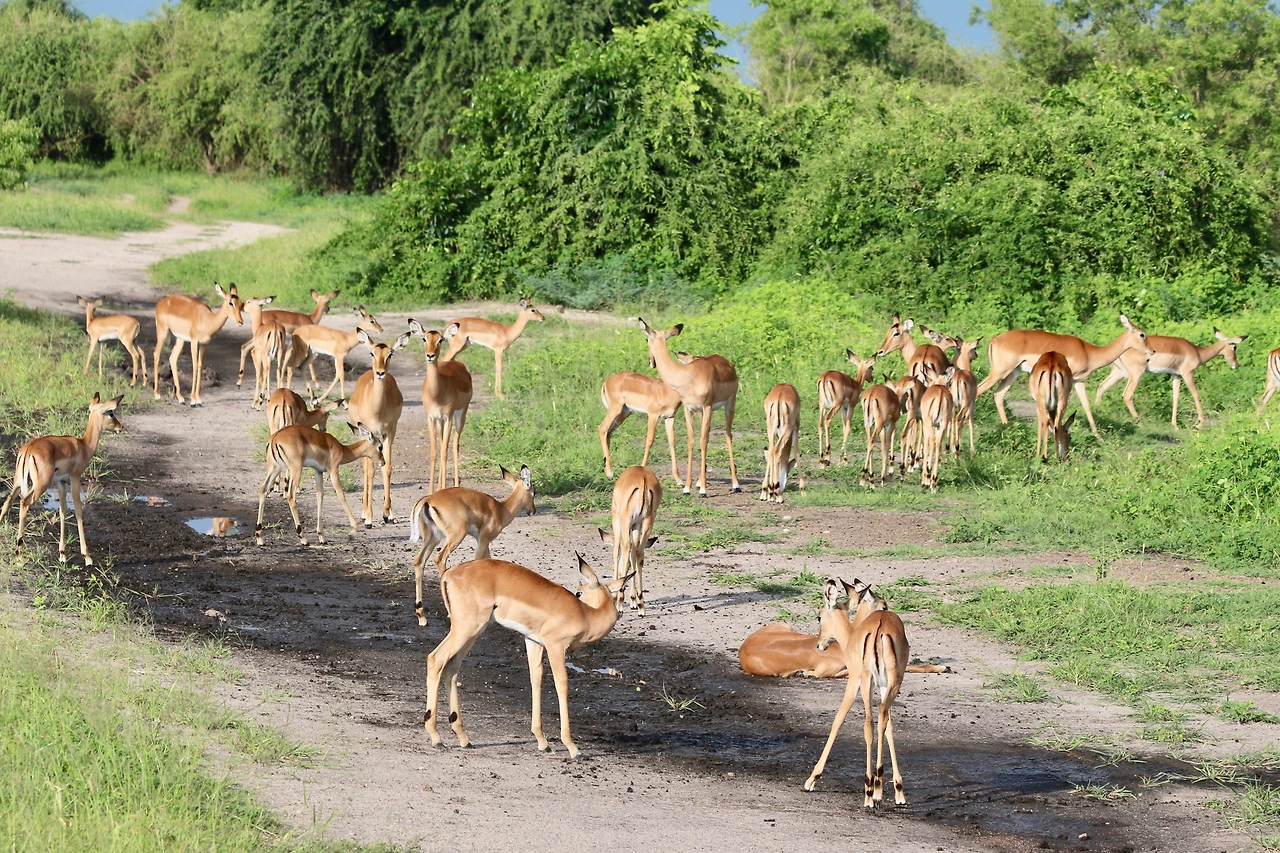 빅토리아 폭포를 떠나 짐바브웨 국경에 도착했다. 짐바브웨 출입국 사무소에서 출국 스탬프를 받고 다시 보츠와나 출입국 사무소에서 입국 스탬프를 받았다. 보츠와나에는 두 번째로 입국하는 것이다. 이번에는 나미비아에서 국경을 통과할 때와는 달리 입국 신고서류 없이 여권에 스탬프를 찍어준다. 보츠와나는 아프리카에서 잘 사는 나라 중 하나답게 여유가 있어 보인다. 한국과는 비자면제 협정이 되어 있어 단기간 머무는 관광객은 비자가 필요 없다. 사람보다 소가 많아 방역이 철저하다. 짐 속에 있는 모든 신발을 꺼내 소독약에 바닥을 닦아야 한다. 보츠와나로 입국하여 까사네에 있는 슈퍼마켓에 들러 먹을거리를 사서 싣고 지난번 팀들과 빅폴로 가기 전에 이틀을 머물렀던 테베리버 캠프장으로 갔다. 캠프장에서 점심을 만들어 먹고 오후 3시까지 바에서 음료수 한 병 시켜두고 시간을 보냈다. 초베 사파리 투어는 지난번 팀과 빅폴로 가기 전에 했었는데 이번에는 빅폴에서 출발해서 나이로비로 가는 팀을 위해서 다시 하는 것이다. 나처럼 케이프 타운에서 나이로비까지 풀코스로 여행을 하는 사람은 두 번 하도록 프로그램이 만들어져 있다. 지난번에 못 본 표범이나 치타를 볼 수 있으면 좋겠다고 기대해 본다. 초베는 다른 공원보다 동물들을 볼 기회는 많은데 치타나 표범 그리고 사자 같은 맹수는 운이 좋아야 만날 수 있다. 특히 물이 많은 우기에는 더욱 그렇다.