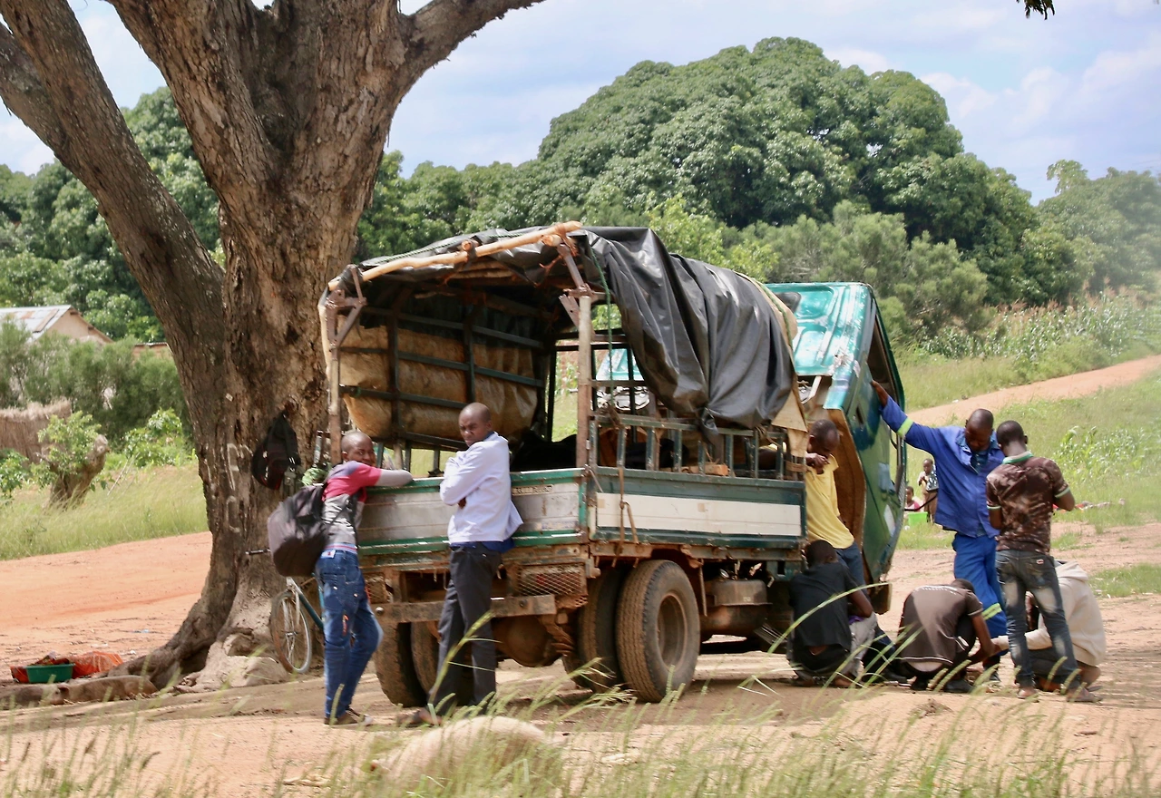 오전 5시가 조금 넘었는데 텐트 밖에서 맥켄지가 부른다. 난 4시 반에 일어나서 여행기를 정리하고 있었다. 가급적이면 빨리 출발하자고 한다. 레인커버를 벗기고 텐트를 걷었다. 아침을 먹자마자 출발이다. 6시 50분이다. 아침해가 숲으로 덮인 평원을 비춘다. 바다 같은 파란 지평선이 끝없이 펼쳐진다. 오늘은 잠비아의 수도인 루사카 까지 500km를 가는 먼길이다. 가는 길에 짐바, 칼로모, 초마 같은 작은 도시를 거치지만 한 군데에서도 쉬지 않고 3시간을 달렸다. 오전 10시가 조금 넘어 길가에 차를 세운다. 부시부시 토일렛 시간이다. 여자는 왼쪽 남자는 오른쪽, 맥켄지가 정해준 대로 가서 볼일을 보고 온다. 다시 출발한 타타는 바토카를 지났다. 루사카까지는 거의 반 정도 왔다. 길가에는 옥수수밭이 많이 보인다. 잠비아에 들어오니 지금까지 지나온 곳보다는 길가에 원주민 집들이 드문드문 보이고 농가 주변에 경작지도 보인다. 인구밀도가 다른 나라보다는 높아 보인다.