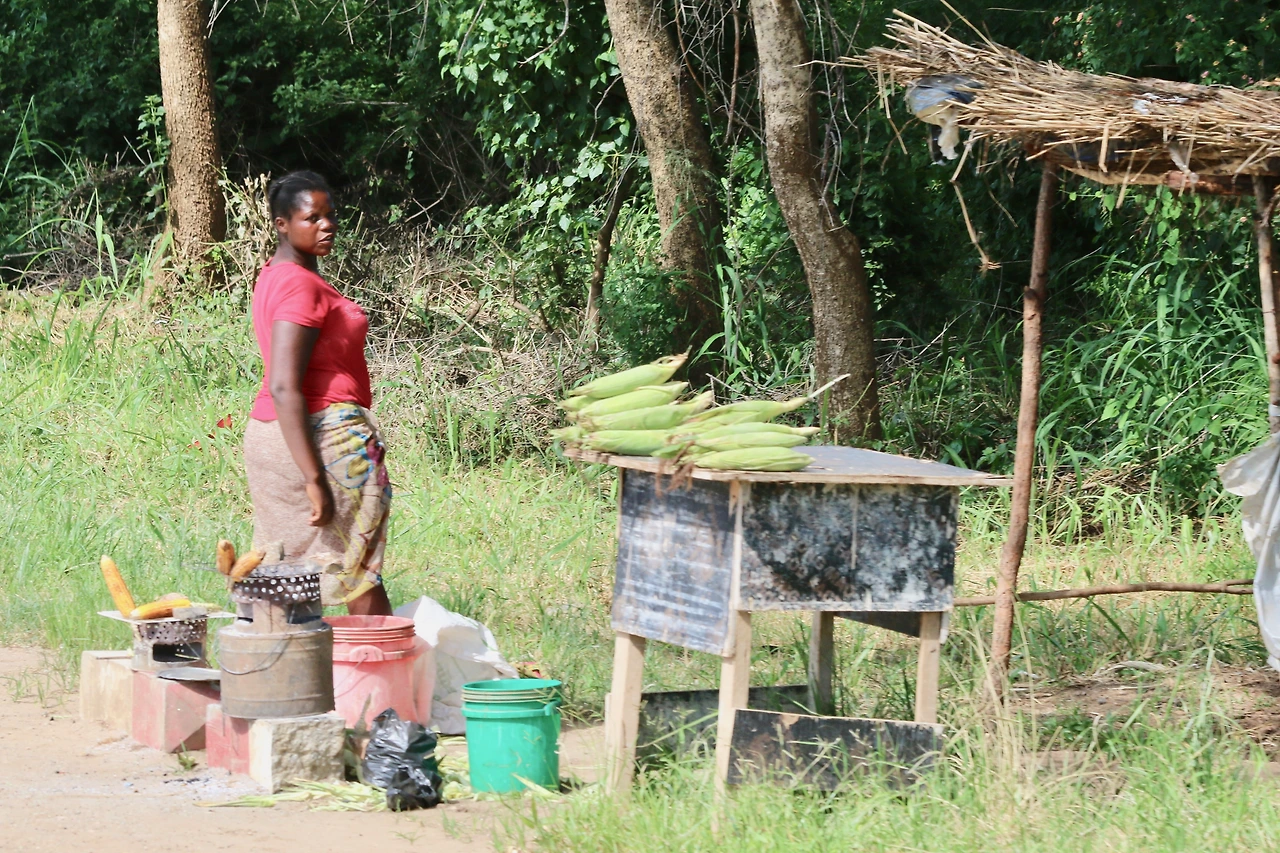 타타가 몬제라는 소도시를 지났다. 도로에는 화물차들이 많아졌다. 물동량이 많다는 것은 경제가 활발하다는 증거다. 길가에 소도시도 많고 경작지도 많으니 지나온 다른 나라들보다는 사람이 많이 산다는 느낌이다. 오전 11시 40분 타타를 길가 큰 나무 아래 세우고 점심을 먹었다. 튜나 샌드위치인데 마틴이 만드는 것보다 이번 여행의 주방 담당 피터가 훨씬 더 잘 만든다. 점심으로 먹고 남은 음식은 인근에 있는 현지인에게 주었다. 음식을 넉넉히 준비하기 때문에 식사 때마다 남는 음식물이 생기는데 버리지 않고 언제나 주변에 있는 사람들에게 나누어 주는 것이 보기에 좋다. 오후 1시 점심을 마친 후 다시 출발이다. 출발하자마자 마주르카라는 도시를 지난다. 점심을 먹었더니 졸린다. 마주르카를 지나서 1시간 반 정도 가니 카푸에 강을 건너고 카푸에라는 도시가 나온다. 여기에서 루사카는 60km 정도 거리다. 이 지역은 초원지역이 아니고 낮은 산들이 있는 지역이다. 돌산이 아닌 풀과 나무들이 자라는 우리나라에서 흔히 볼 수 있는 그런 산이다. 주변에서는 옥수수를 많이 재배하고 길거리에서 옥수수를 구워 길가에 앉아 파는 곳도 많다.