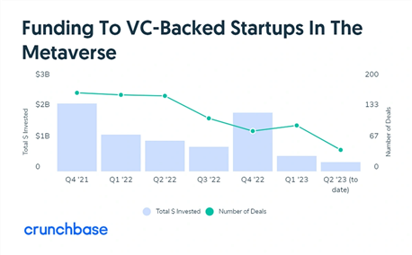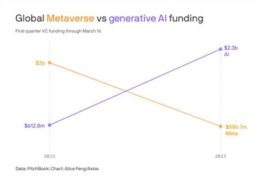 데이터에 따르면 투자자들이 생성 AI 프로젝트에 자금을 지원하기 위해 몰려 들면서 메타버스 기업에 대한 자금이 감소했습니다.