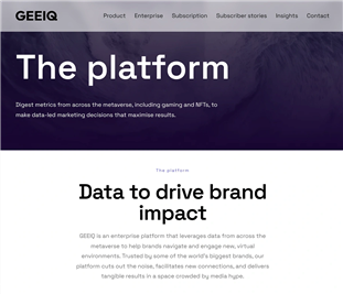 또 다른 예로 Geeiq은 메타버스 디지털 측정 및 인텔리전스 스타트업입니다.