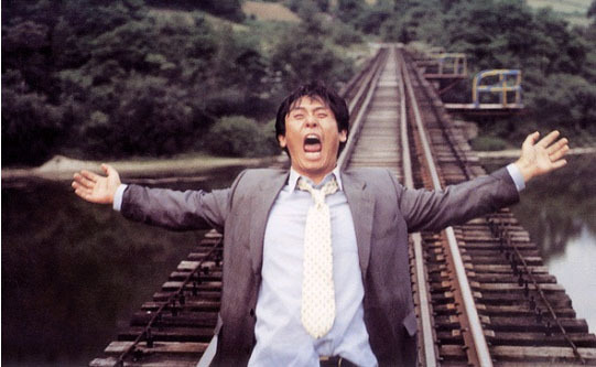 이창동 감독의 <박하사탕>은 과거로 돌아가고 싶은 감정을 극한까지 끌어올려서 소재화한 영화다. 영화가 시작되면 한가로운 야유회 현장에 난데없이 영호(설경구)가 양복을 입은 채로 끼어드는데 이미 제정신이 아닌 것 같다. 영호는 깽판을 부리다가 혼자 철길에 올라가서는 계속해서 정체모를 소리를 질러댄다. 달려오는 기차를 정면으로 막아설 때에야 그는, 처음으로 알아들을 수 있는 소리를 냄과 동시에 격렬하고 처절하게 포효한다.