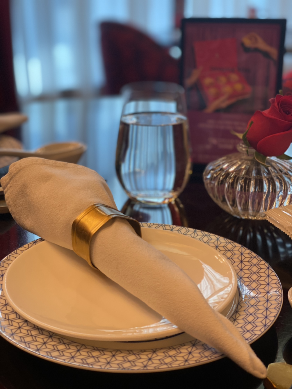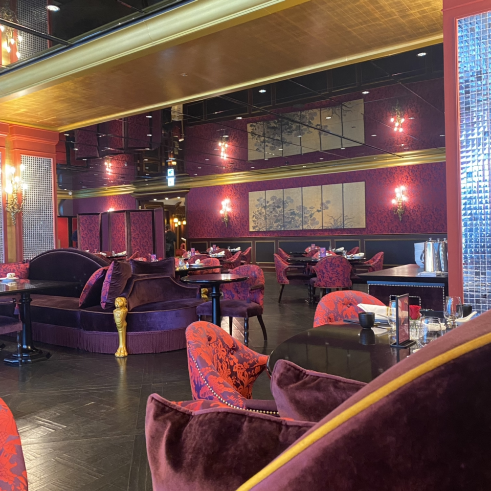 레스토랑의 내부는 화려한 금빛과 강렬한 붉은색으로 인테리어 되어있었다. 붉은색 꽃으로 물들인 좌석들과 붉은 커튼, 모던 느낌의 블랙 타일 바닥은 전체적으로 화려하지만 고급스러운 느낌을 주기에 충분했다.