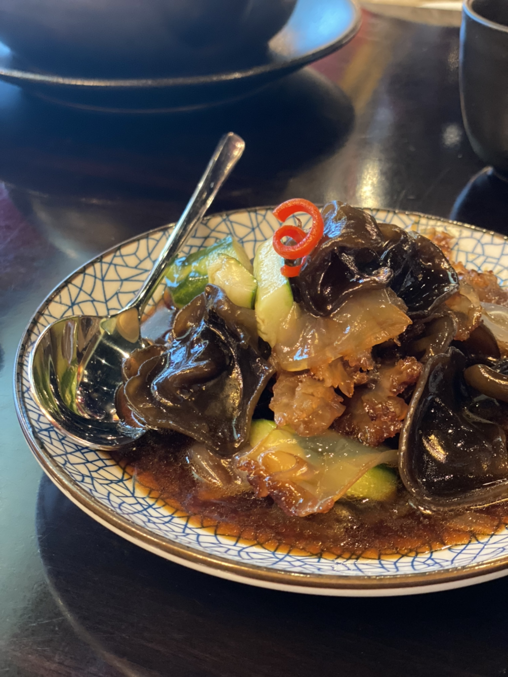 야들야들한 해파리의 식감과 생목이 버섯이 새콤 짭짤한 흑식초와 어우러져 특유의 감칠맛을 느낄 수 있었다. 이렇게 부드러우면서 적당히 꼬들한 해파리 식감은 처음 느껴본 듯하다. 이제껏 내가 먹었던 특유의 쿰쿰한 냄새가 나던 해파리냉채는 뭐였는가 의문이 들 정도였으니.
