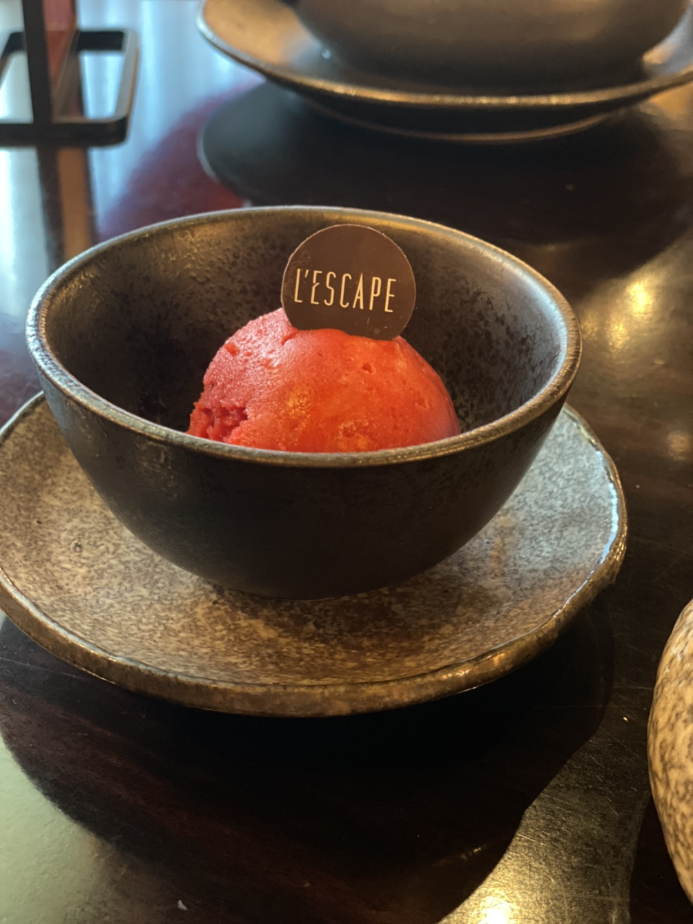 오늘 먹었던 화려한 음식들을 진분홍빛으로 물든 새콤한 라즈베리 셔벗이 깔끔한 마지막으로 장식해주는 느낌이었다.
