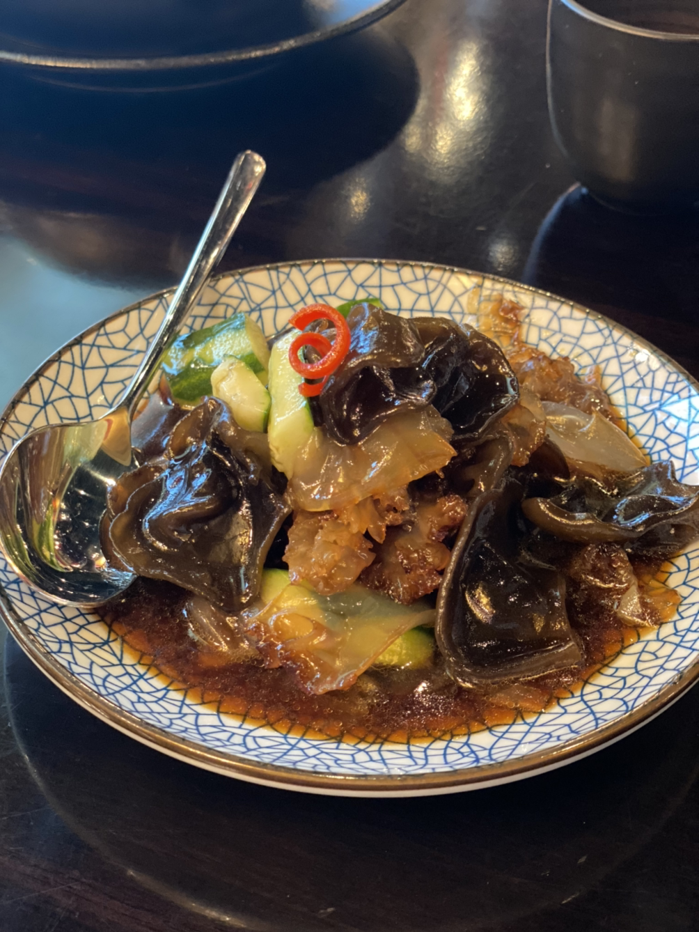 2. Marinated Jellyfish&Cucumber, Fresh Wood Ear Mushrooms Black Fungus, “Zhenjiang Vinegar”