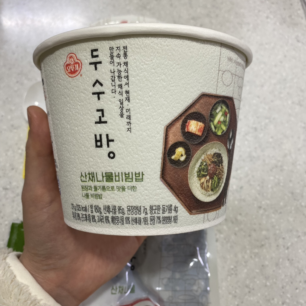 얼마 전 마트에서 오뚜기 컵밥을 사왔다. 두수고방은 경기도 수원에 위치한 사찰음식 전문 채식 레스토랑이다. 사찰음식의 대가로 불리는 정관 스님 제자인 오경순 셰프가 운영하는 곳이라고 한다. 이 제품은 오뚜기와 두수고방이 협업한 제품이다.
