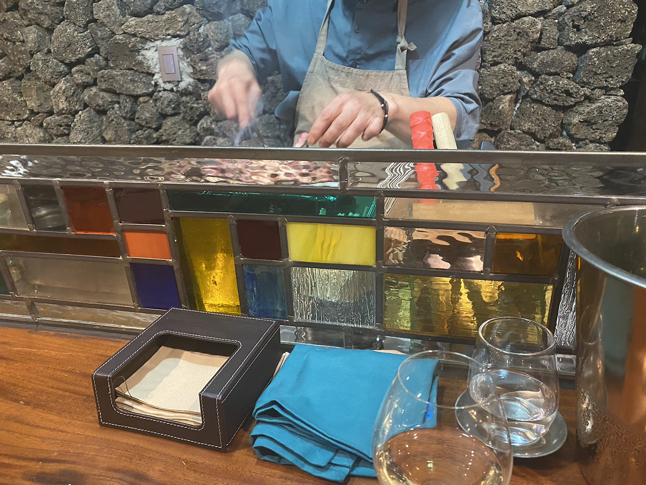 요리 과정을 직접 눈앞에서 보고 귀로 들을 수 있어서 더 즐거웠다. 또한 접시나 식기류부터 레스토랑의 인테리어 하나하나 셰프님의 손길로 꾸며놓아서 구경하는 재미가 있었다.