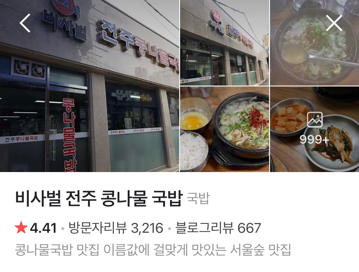 비사벌콩나물국밥은 내가 성수에서 꼽는 최고맛집 다섯곳 중 하나이다. 나누리배 성수 최고맛집 다섯곳은 23년 겨울 현 시점 비사벌, 훼미리, 백리향, 행칼, 술래가 있다. 1)혼밥의 자유도, 2)느긋하게 신문읽기 편안한 테이블회전도, 3)맛의 일관성의 기준으로 선정되었다.
