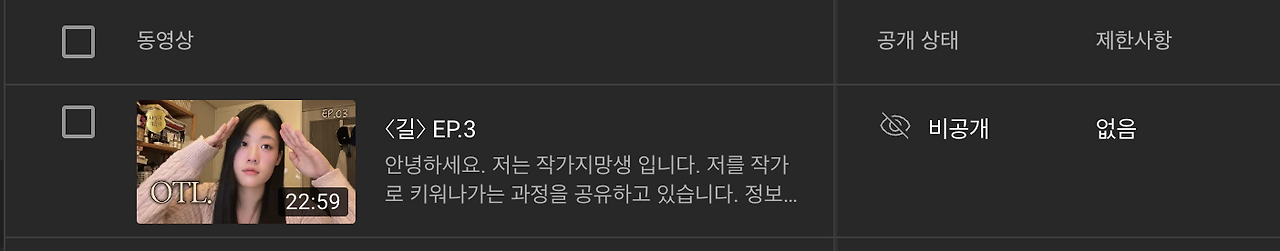 비디오라도 찍어야겠다는 생각으로 카메라에 대고 글 쓰는 단상이랍시고, 이런저런 징징거림을 주절거리고도 도무지 해소가 되지 않았다. (그 비디오는 나의 유투브 채널에서 유일하게 '비공개'가 부여되었다. 차마 내가 돌려볼 수가 없더라고. 처절한 나의 낯이 아무렇지 않아지는 순간이 온다면 '전체 공개'의 영광을 맞이할 수 있을 것이다.) 기어코 나는 베개에 얼굴을 파묻고 엉엉 울었다. 정말 일을 그만두고 글에만 전념해야하는 것 아닐까. 오만한 발상 아니냐고 일을 마친 밤에만 글을 쓰겠다는 생각은 말야.