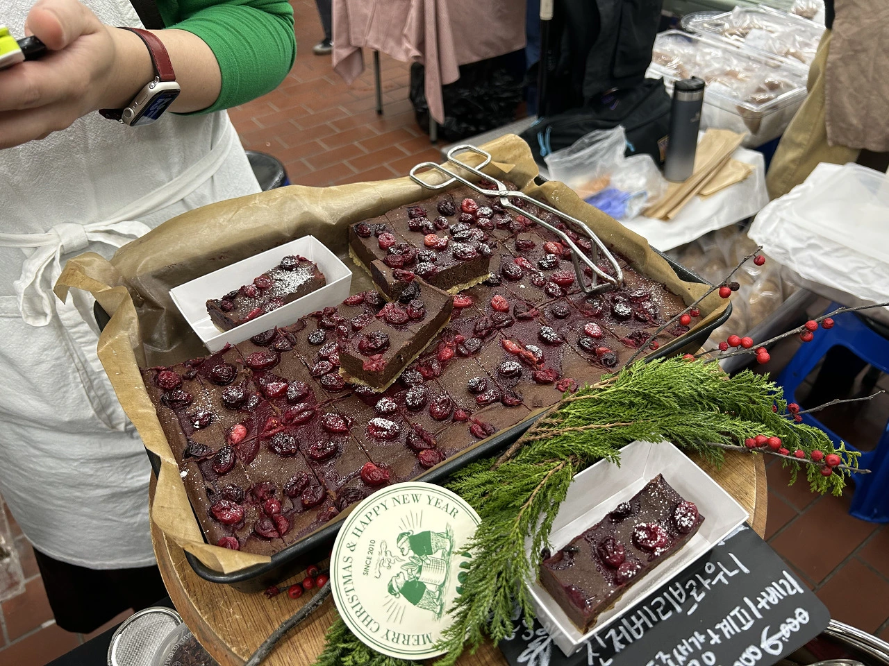 결국 한라산 로즈마리와 밤송이 판매 매대를 지나 자비로운 횐님에게서 뿌추(뿌리는 후추) 몇개를 선물받고는 크리스마스를 연상케하는 붉은 크랜베리가 담뿍 올라간 브라우니와 드립 커피 한잔을 사서 스탠딩 커피바에 자리를 잡았다. 가장 좋아하는 시간이다. 횐님과의 대화.