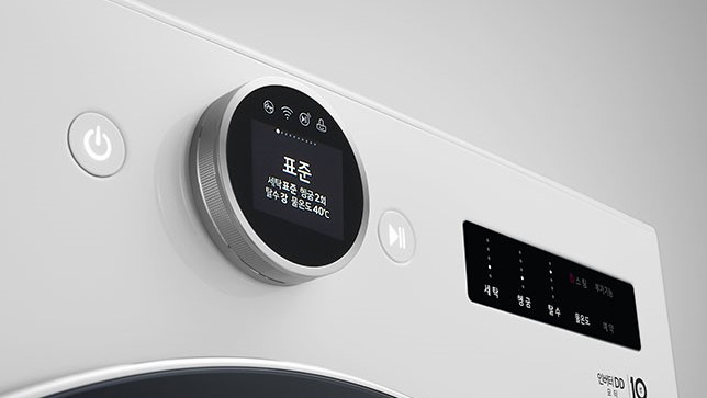 가정에서 많이 사용하는 가전의 버튼 배치를 한 번 살펴보겠습니다. 세탁기와 같은 가전은 기능을 실행하기 위해서는 전원 켜고 옵션을 선택한 후 마지막에 동작을 실행하기와 같은 순차적인 단계를 거치게 되는데요. 아래 그림과 같이 세탁기 조작부의 버튼 배치는 좌측에서부터 전원 버튼, 옵션 선택 휠, 그리고 실행 버튼의 순서로 배치되어 있어, 각 버튼 간의 이동거리가 최적화되어 있습니다. 그렇기 때문에 사용자가 효율적인 동작으로 기능을 빠르게 실행할 수 있습니다.
