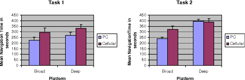 정보 구조에 따른 평균 탐색 시간 비교 (출처. Web navigation structures in cellular phones)