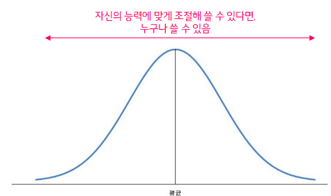 누구나 사용할 수 있도록 배려하려면, 각자 능력에 맞추어 기능(예. 버튼 크기, 글자 크기 등)을 조절할 수 있도록 디자인해야 합니다. 사용자는 이러한 조절 기능을 통해, 개인의 능력에 따라 적절하게 맞추어 사용할 수 있습니다. 이러한 개념은 인체 측정치 응용 원리 중 조절식 설계 개념과 일맥상통하는데요, 아래 그림과 같이 각기 다른 신체적 특성을 가진 사용자는 자신의 신체 특성에 맞게 제품과 서비스를 조절하여 쓸 수 있기 때문에 누구나 사용할 수 있습니다