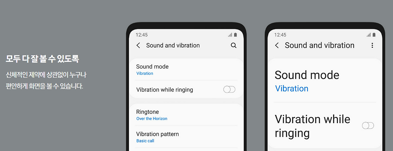 그렇다면 시니어의 어떤 특성을 배려해 디자인해야 할까요? 시니어는 노화에 따라 시력 뿐만 아니라 청력도 저하하게 되는데요, 이러한 저하된 지각 능력을 배려해 정보를 쉽게 인식할 수 있도록 디자인해야 합니다. 그 예로 아래 그림과 같이 글자 크기를 개인의 시각 능력에 맞게 조절할 수 있게 디자인하면 시니어 뿐만 아니라 모든 일반 사용자들도 쉽게 정보를 인식할 수 있습니다.