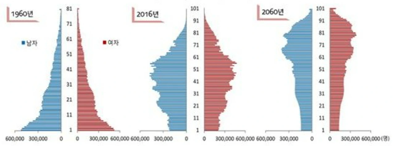 첫 번째는 고령화 사회의 도래입니다. 아래의 그래프들과 같이 우리나라의 연령구조는 급속도로 고령화되고 있습니다. 이는 이제까지는 전체 고객 비율에서 시니어가 차지하는 비율이 그리 크지 않았지만, 앞으로는 시니어가 주요 사용자이면서 지갑을 여는 주요 고객 층으로 이동하고 있다는 것을 의미합니다. 이는 기업 관점에서도 비즈니스를 위해 놓쳐서는 안되는 중요한 시그널입니다.