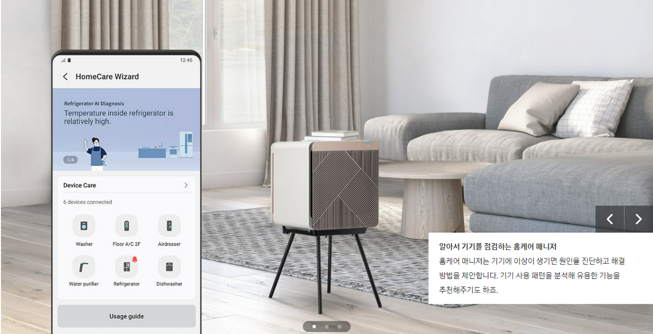 SmarthThinqs 홈케어 매니저 (이미지 출처: Samsung.com)