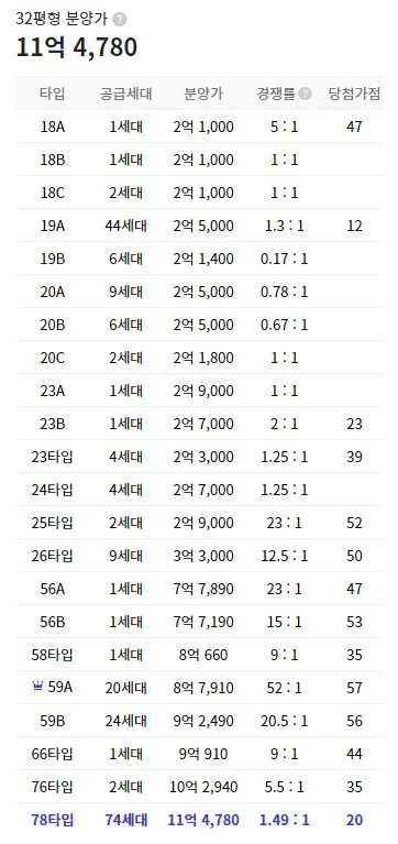 대부분 소형 평수인데 사람들이 가장 선호하는 59타입은 A타입이 약8억8천, B타입이 약9억3천이다. 9억이 넘어가면 중도금 대출이 불가능한데 59B타입부터는 중도금 대출을 받을 수 없다. 분양가의 절대가만 비싼 것이 아니라 주변 시세 대비 상대적인 가격도 비싸다. 우이신설선 가오리역 바로 앞에 위치한 수유벽산 아파트의 25평은 6.1억, 한일병원 옆에 위치한 쌍문동삼성래미안 23평은 6.6억, 쌍문한양1차 아파트 27평은 7억이다.