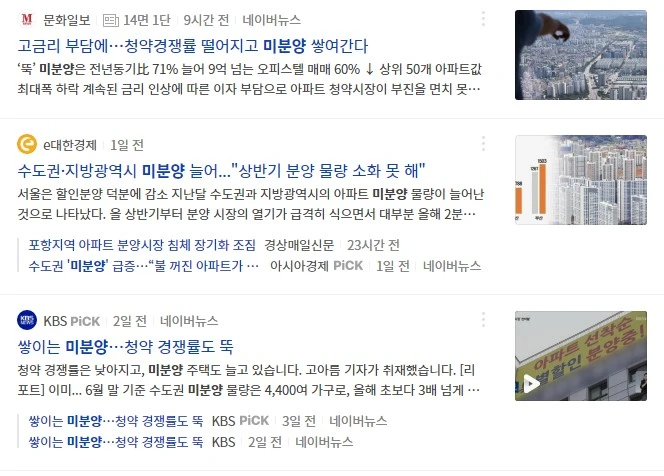 요즘에 집값은 떨어지고 미분양은 계속 쌓이고 청약 경쟁률도 뚝 떨어졌다는 기사를 심심찮게 볼 수 있다.