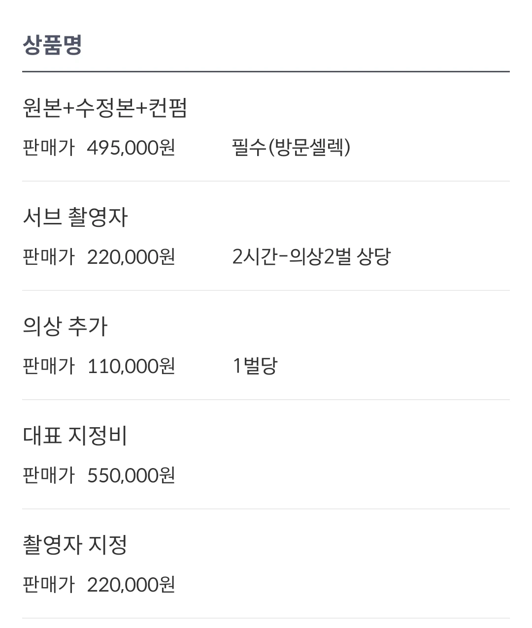 게다가 결혼 준비를 하다보면 야금야금 추가금이 붙어서 금방 예산을 초과한다. 다른 사람들 후기를 찾아보면 절대 추가금 안내야지! 굳은 각오를 하고 가도 막상 드레스를 입어보면 블랙 라벨, 골드 라벨 드레스가 몸에 착 감겨서 추가금을 지불한다. 스튜디오 촬영을 가서도 인생에 한 번 뿐인 웨딩 촬영인데 하고 싶은거 다 해야지! 하면서 야간 촬영, 야외 촬영 등등을 진행하면서 촬영 추가금에 헬퍼비 추가금, 드레스랑 촬영복 대여 추가금 등등 온갖 추가금을 기꺼이 낸다.