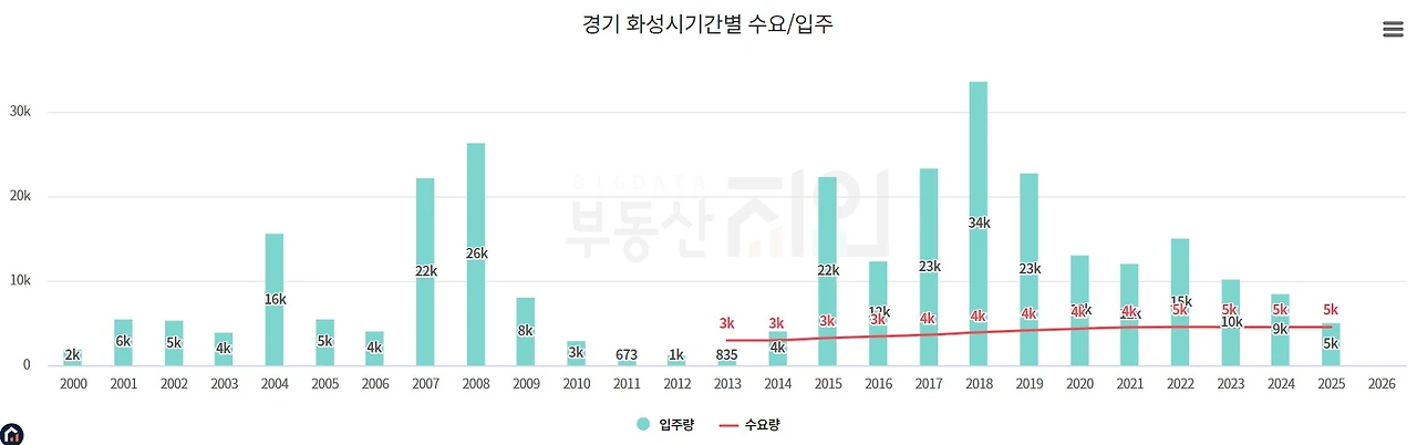 동탄 2기 신도시는 2015년부터 입주를 시작했고 그 이후로 계속해서 수요량을 한참 초과하는 입주량이 지속되어왔다. 이미 과거에 공급된 엄청난 공급 폭탄을 소화하는데에도 시간이 필요하다.