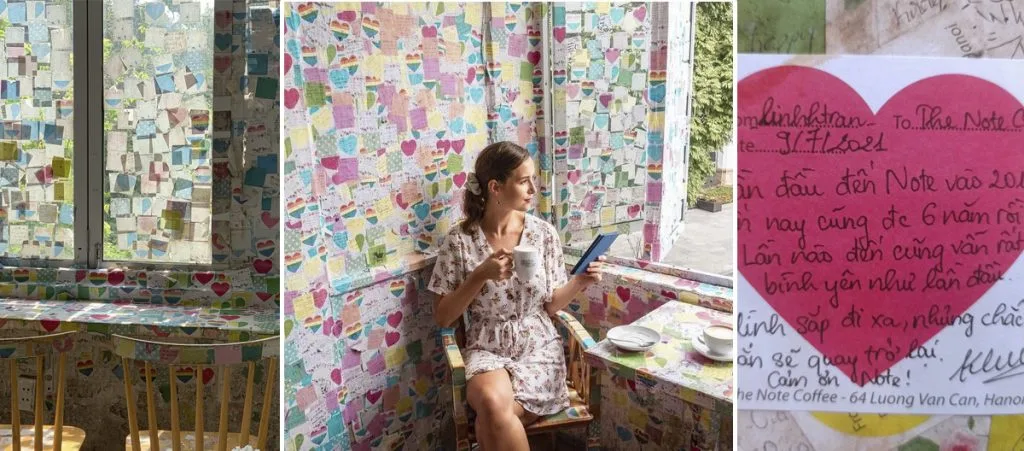 다시 하노이다. 호안끼엠 호수변에는 작지만 독특한 카페들이 많다. 그중 하나는 ‘더 노트 커피’라는 곳이다. 이곳이 유명한 이유는 커피도 커피지만, 메뉴를 주문할 때 함께 오는 ‘포스트잇’에 달려있다. 이 포스트잇에는 소박하지만 귀여운 응원의 문구가 적혀있는데. 이것이 더 노트 커피를 유명하게 만들었다.